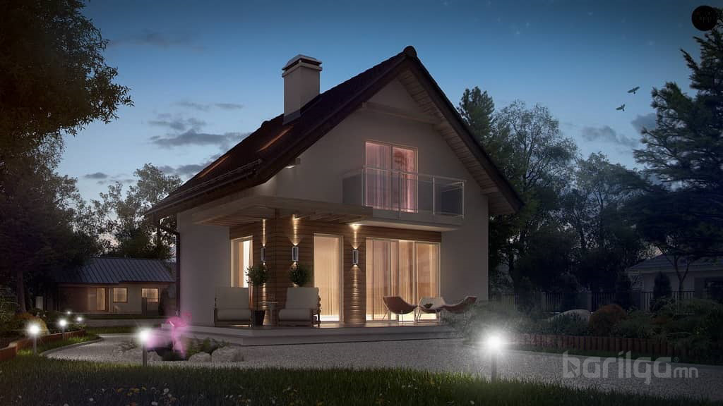 Энэхүү барилга нь мансардтай хоёр давхар 78 ам метр амины орон сууц юм. Нэгдүгээр давхартаа зочны өрөө, гал тогоо, үүдний өрөө, техникийн болон ариун цэврийн өрөөнөөс бүрдэнэ. Хоёрдугаар давхартаа хоёр унтлагын өрөө, угаалгын өрөөтэй. Барилгын хэмжээ нь тэнхлэгээрээ 7,5x7,5м харьцаатай ба шугаман суурьтай, шувуун нуруун дээвэртэй, нэгдүгээр давхартаа бетон шалтай, давхар дундын модон хучилттай, хөнгөн блокон хана дүүргэлттэй, 15см зузаан нягтрал сайтай хөөсөнцөр дулаалгатай, дээврийн дулаалгыг 15см зузаан эрдэст хөвөн хавтангаар тооцлоо. Барилгын төсөвт өртгийг зах зээлийн бодит үнэ ханшаар тооцож гаргалаа.