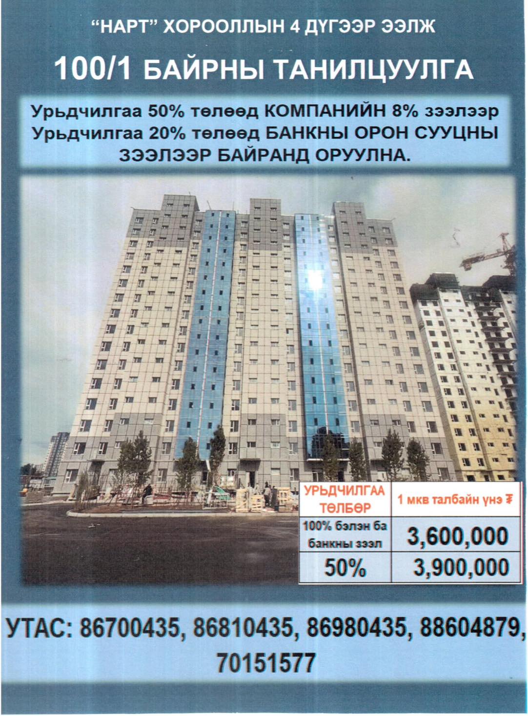Баянзүрх дүүргийн 13-р хорооны нутаг дэвсгэрт “Нарт” хорооллын 4-р ээлжийн 450 айлын орон сууц нь: