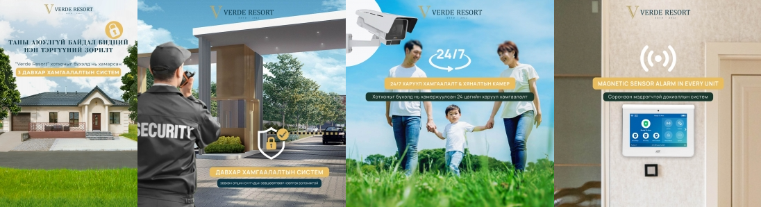 "VERDE RESORT" төсөл нь хотын хэт төвлөрөлт, агаарын бохирдлоос зайтай шинэ суурьшлын бүсэд бөгөөд хотын аль ч цэгээс цаг алдалгүй очих зам харилцаа сайн таатай бүсэд төлөвлөгдсөн нийт 31 айлын эко хотхон.