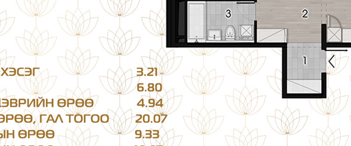 БЗД 4-р хороо, Жуков худалдааны төвийн хойно байрлалтай "WHITE LOTUS RESIDENCE" хотхон 16 давхар 168 айлын орон сууц , 2 орц , 4 лифттэй. 1 давхартаа зочид угтах, амрах тохилог лоббитой. Барилгын хийцлэл: Бүрэн цутгамал , метал фасад. 3 давхар шилэн цонх, шилэн тагттай , тоглоомын талбай , ногоон байгууламж , явган зам талбай , автомашины ил болон дулаан зогсоолтой. Ашиглалтад орох хугацаа: 2026 оны 3-р улирал