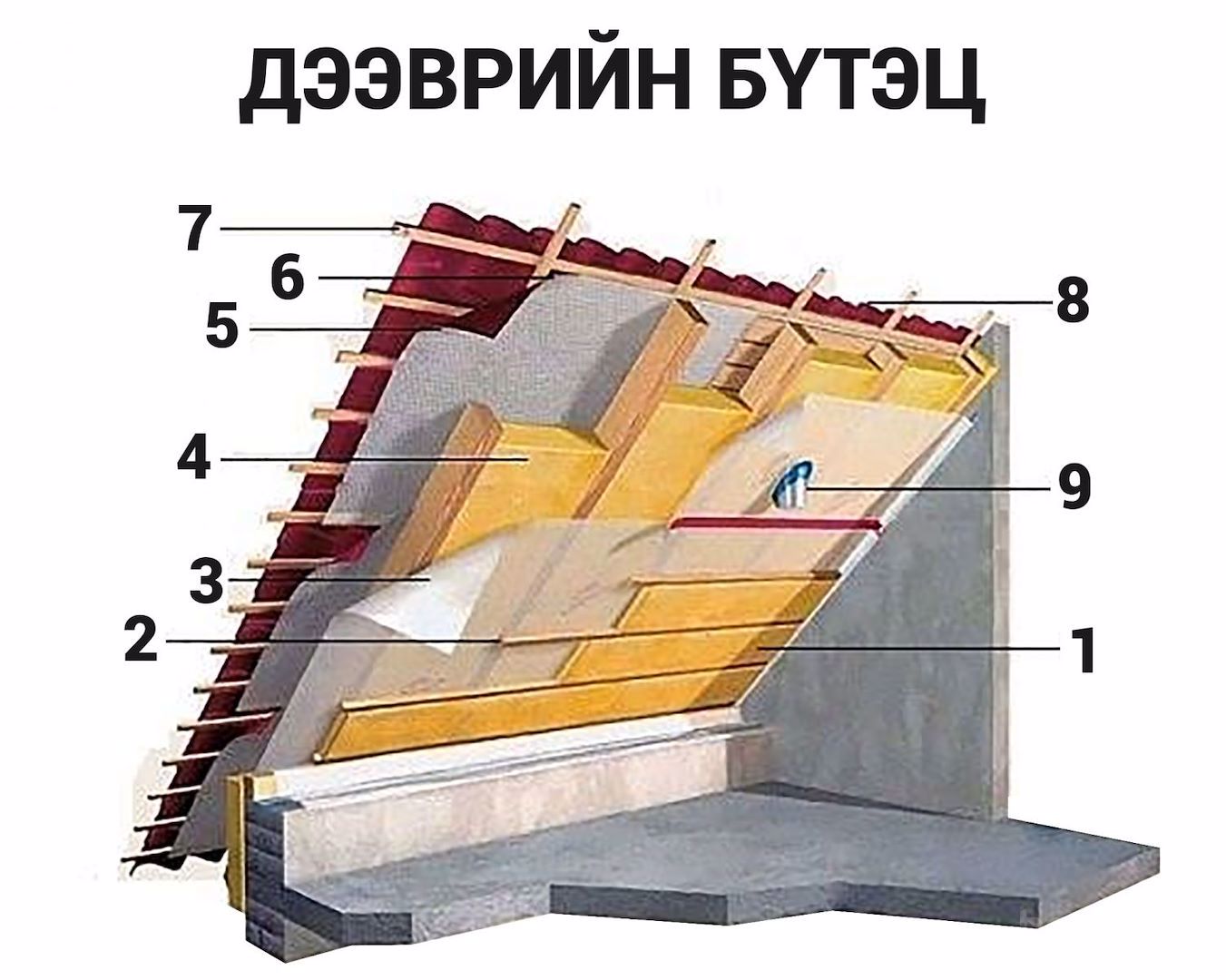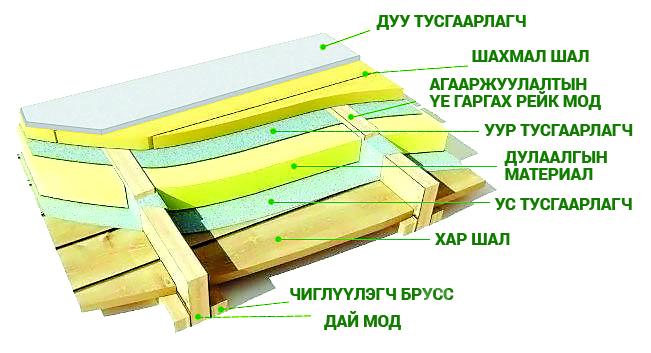 Дээврийн дулаалгын бүтэц: