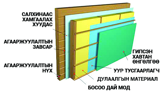 - Дээврийн хөндийн дулаалга зэрэг орно.
