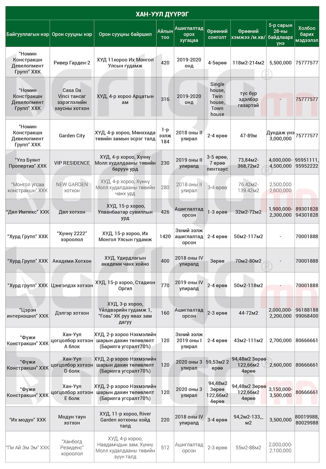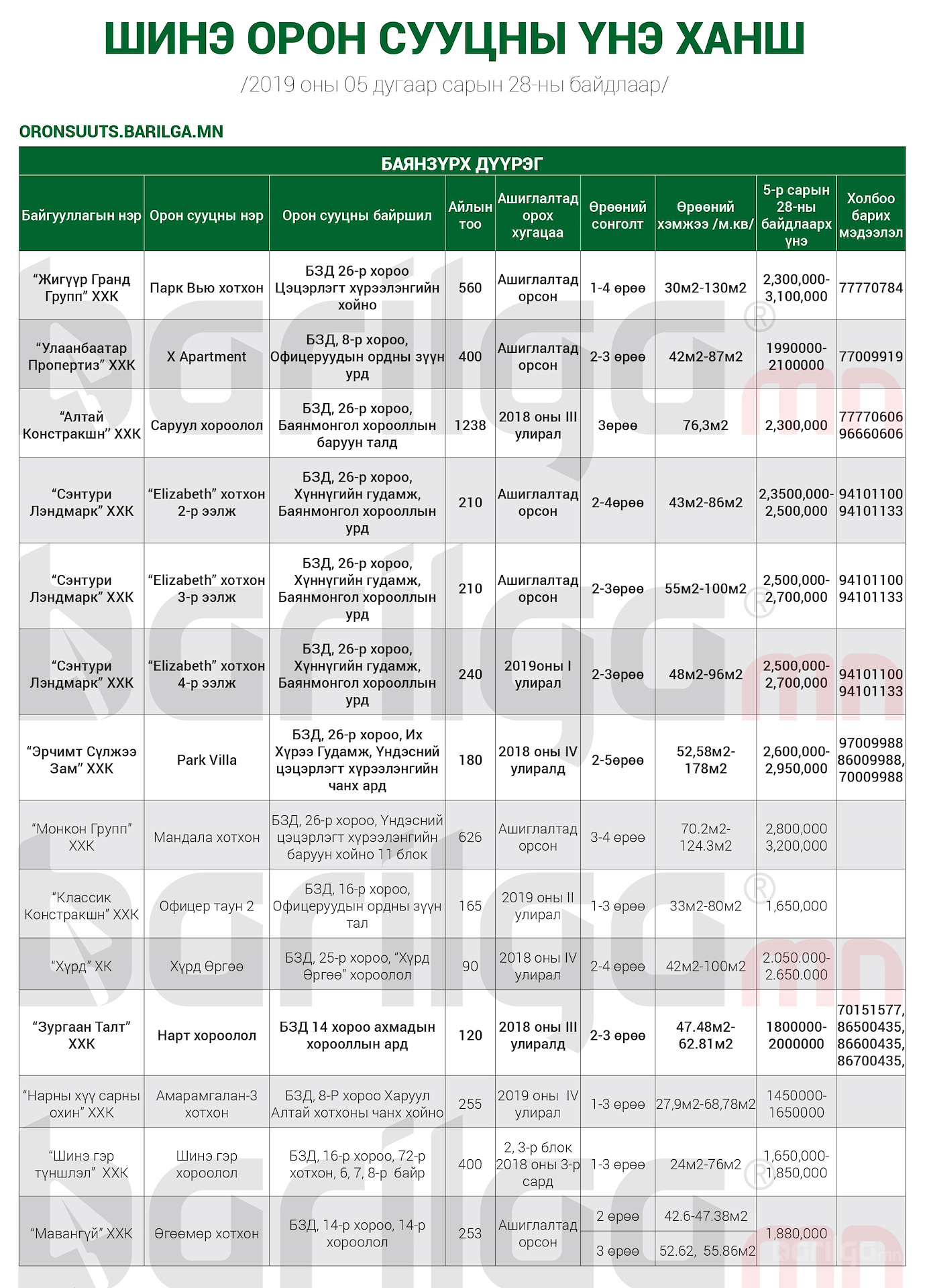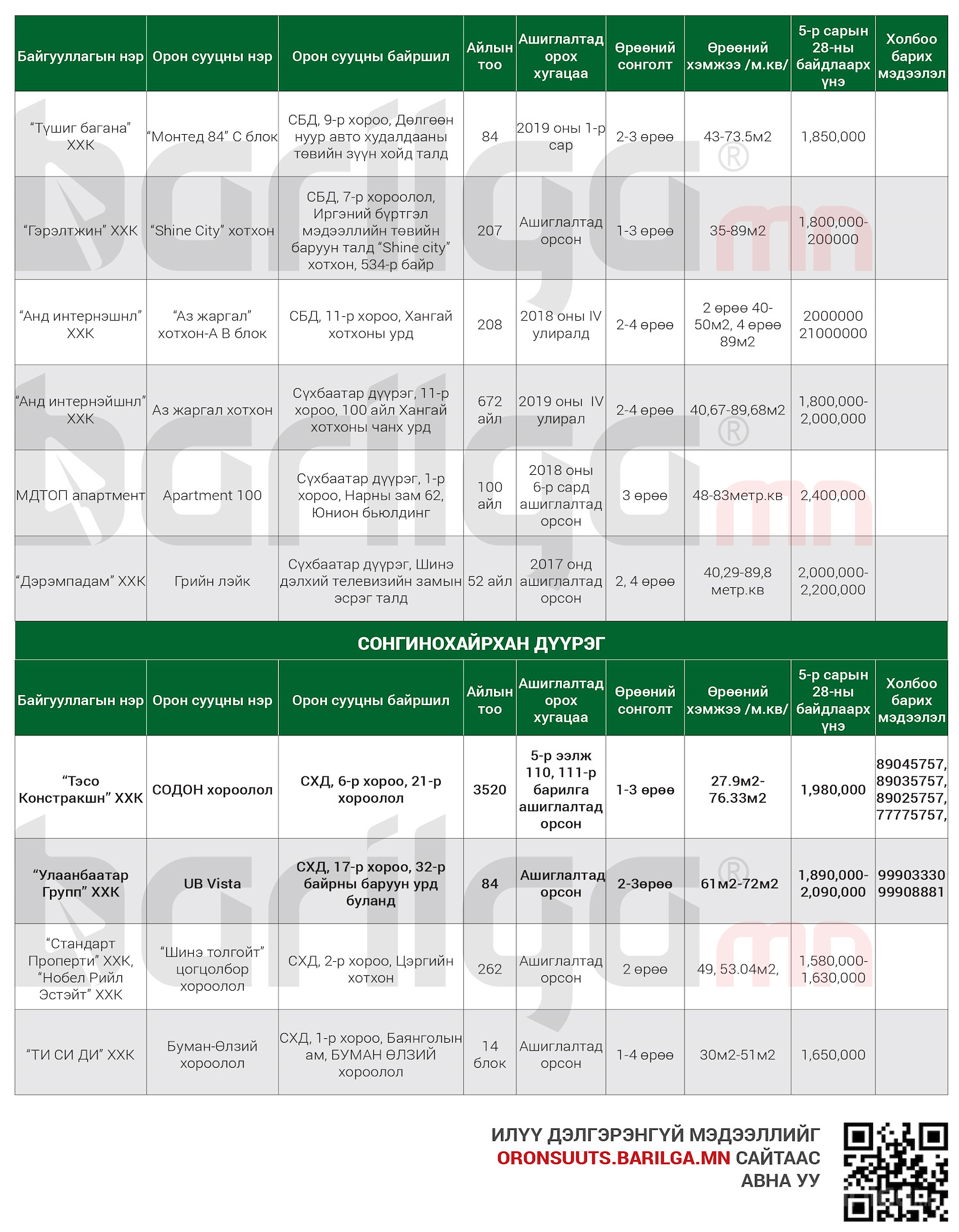 "Барилга.МН" сэтгүүлээс сар бүр хүргэдэг ШИНЭ ОРОН СУУЦНЫ үнэ ханшийн мэдээллийг