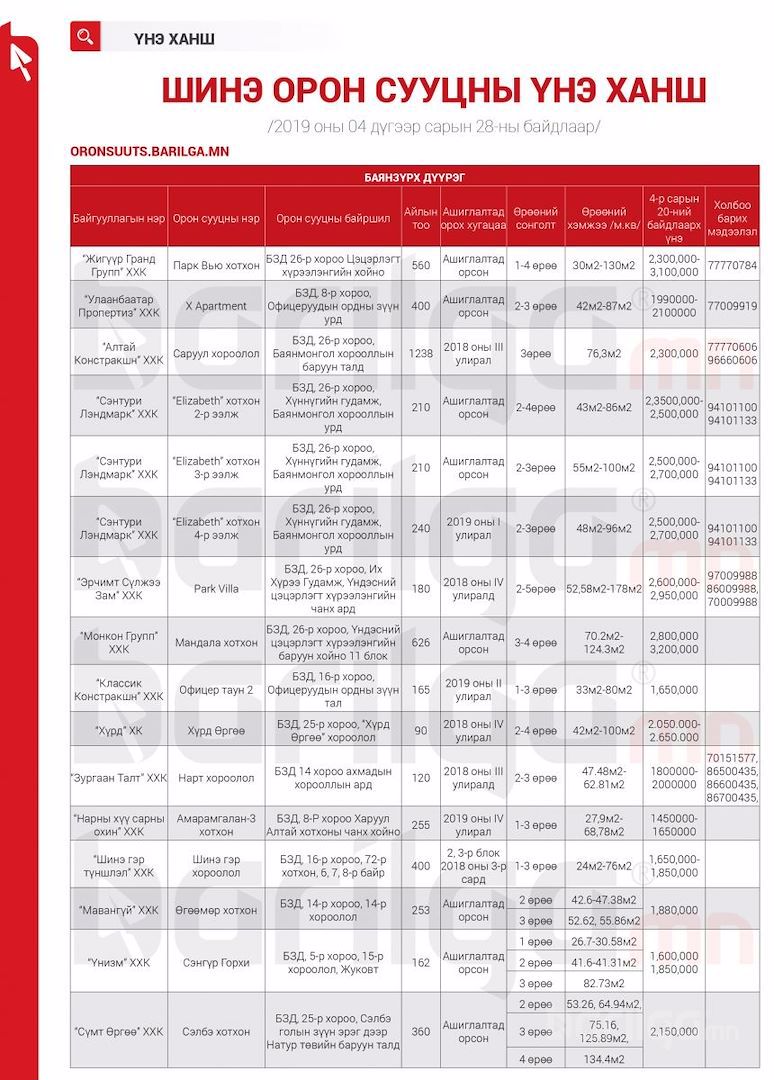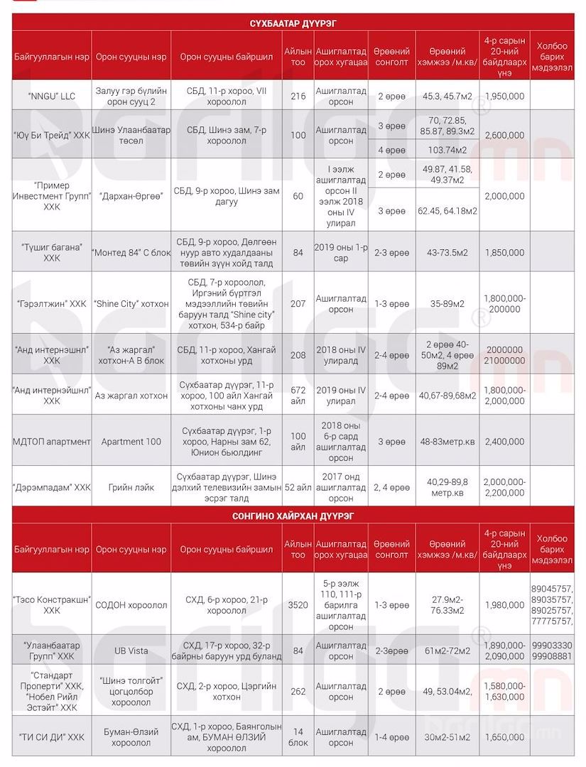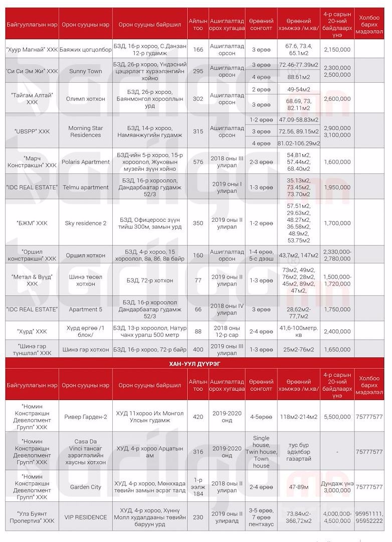Улаанбаатар хотод захиалга авч буй Шинэ Орон Сууцны мэдээлэл