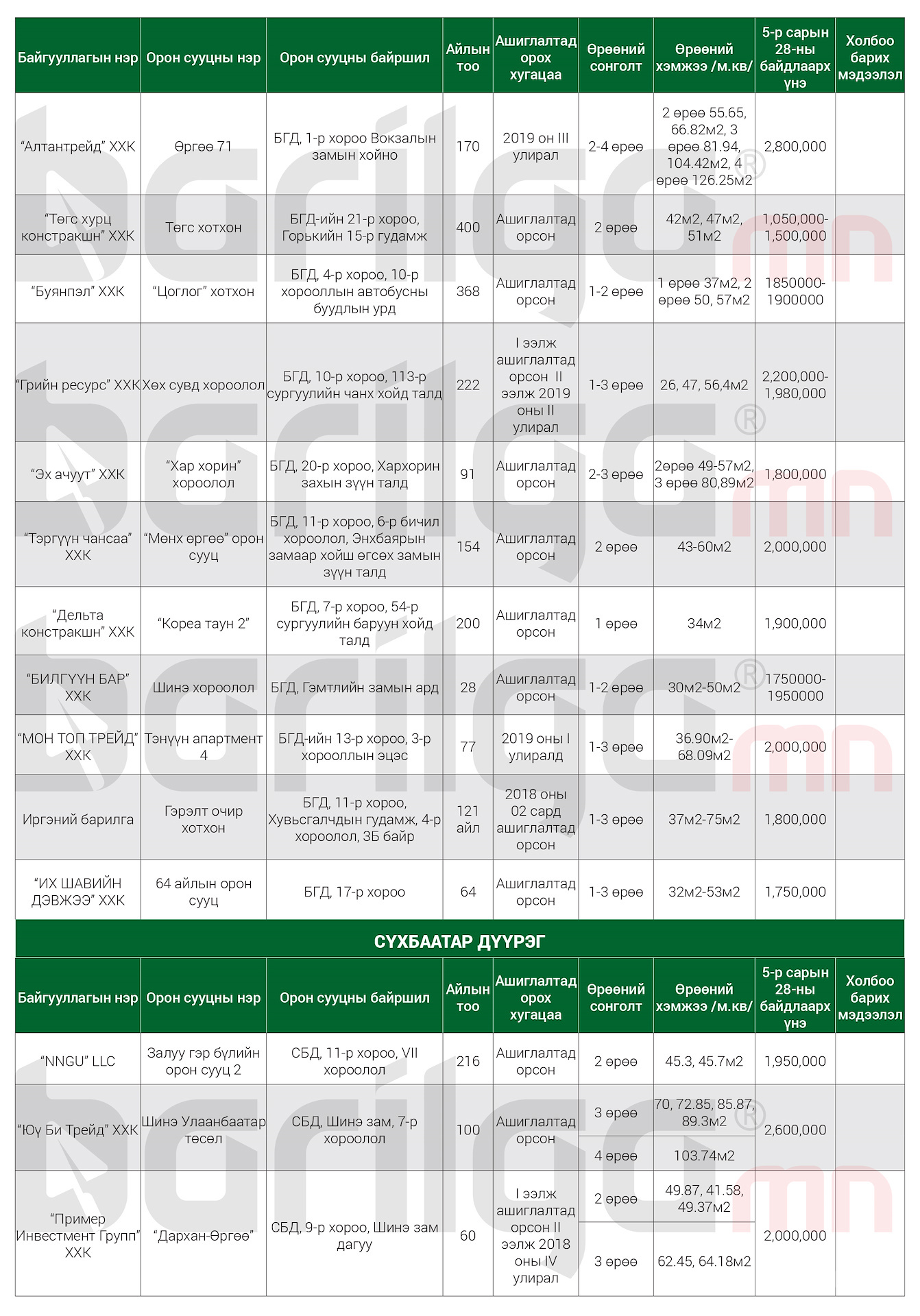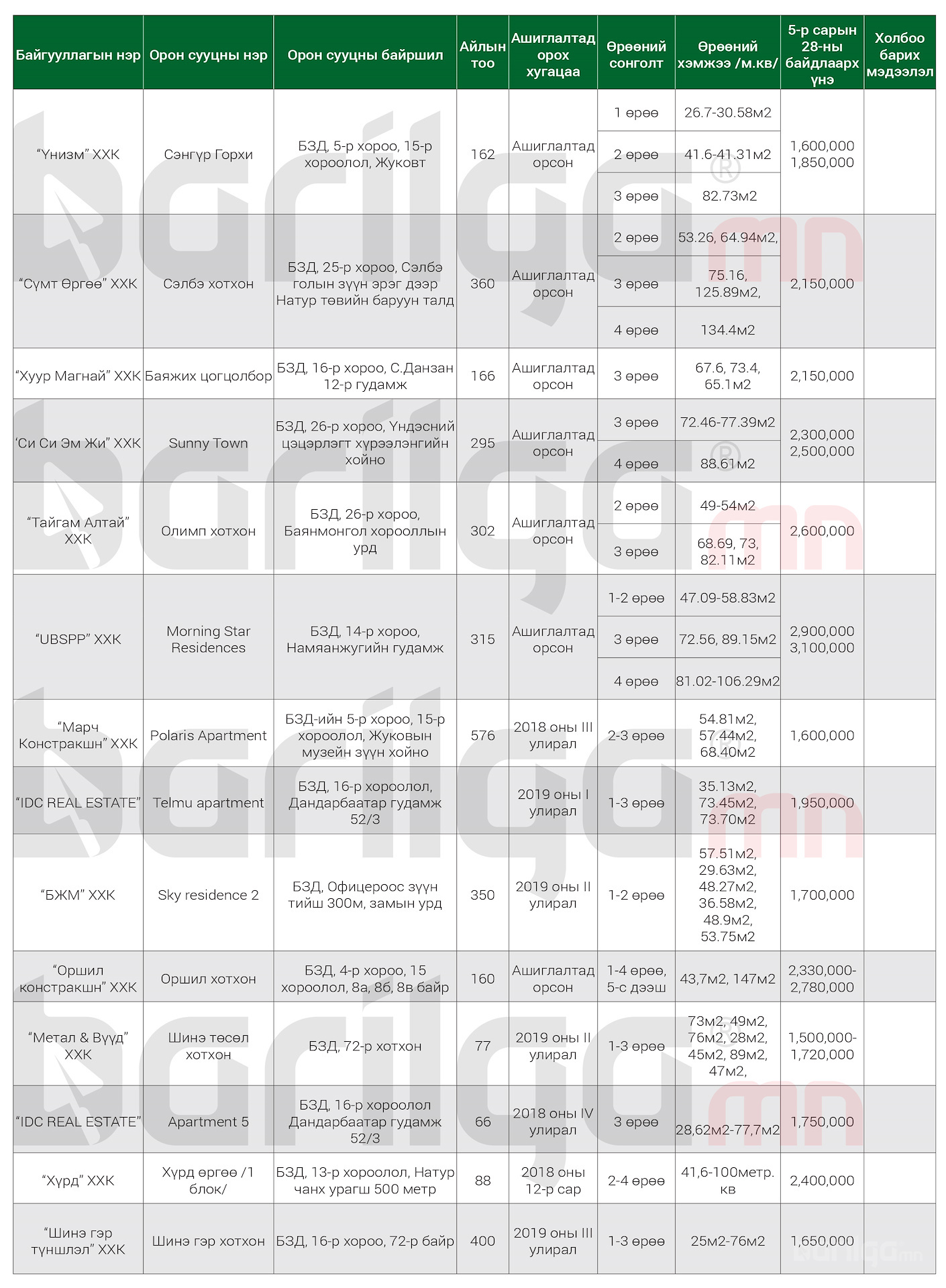"Барилга.МН" сэтгүүлээс сар бүр хүргэдэг ШИНЭ ОРОН СУУЦНЫ үнэ ханшийн мэдээллийг