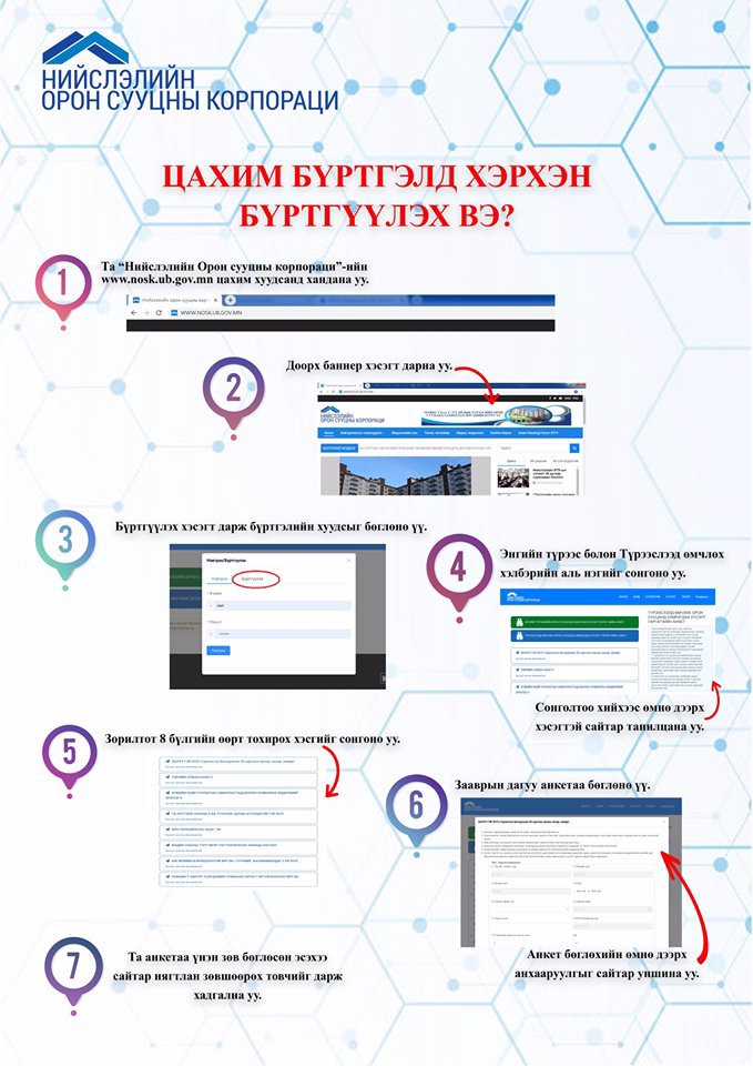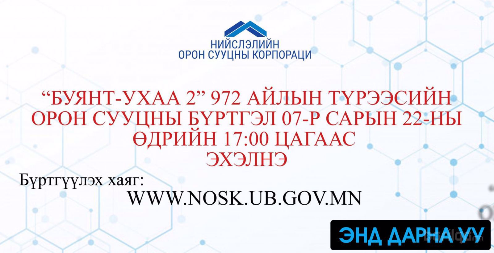 Мөн өмнө нь Захирагчийн ажлын алба, Ахмадын орон сууц болон дүүрэг хороонд орон сууцанд хамрагдах хүсэлт гаргасан иргэдийн оочер дугаар харгалзахгүй бөгөөд дахин цахим бүртгэлд хамрагдах шаардлагатай гэдгийг анхааруулж байна.