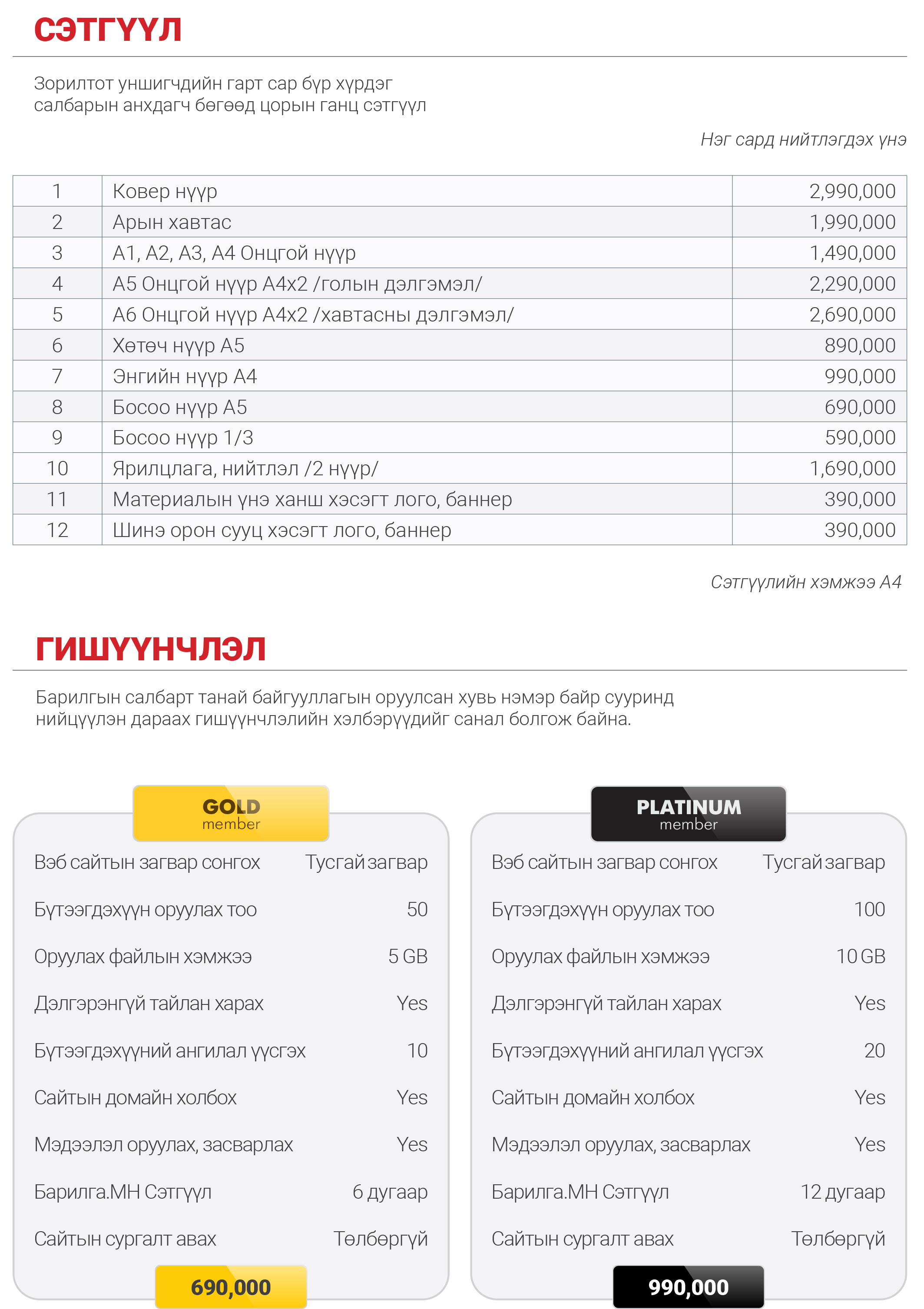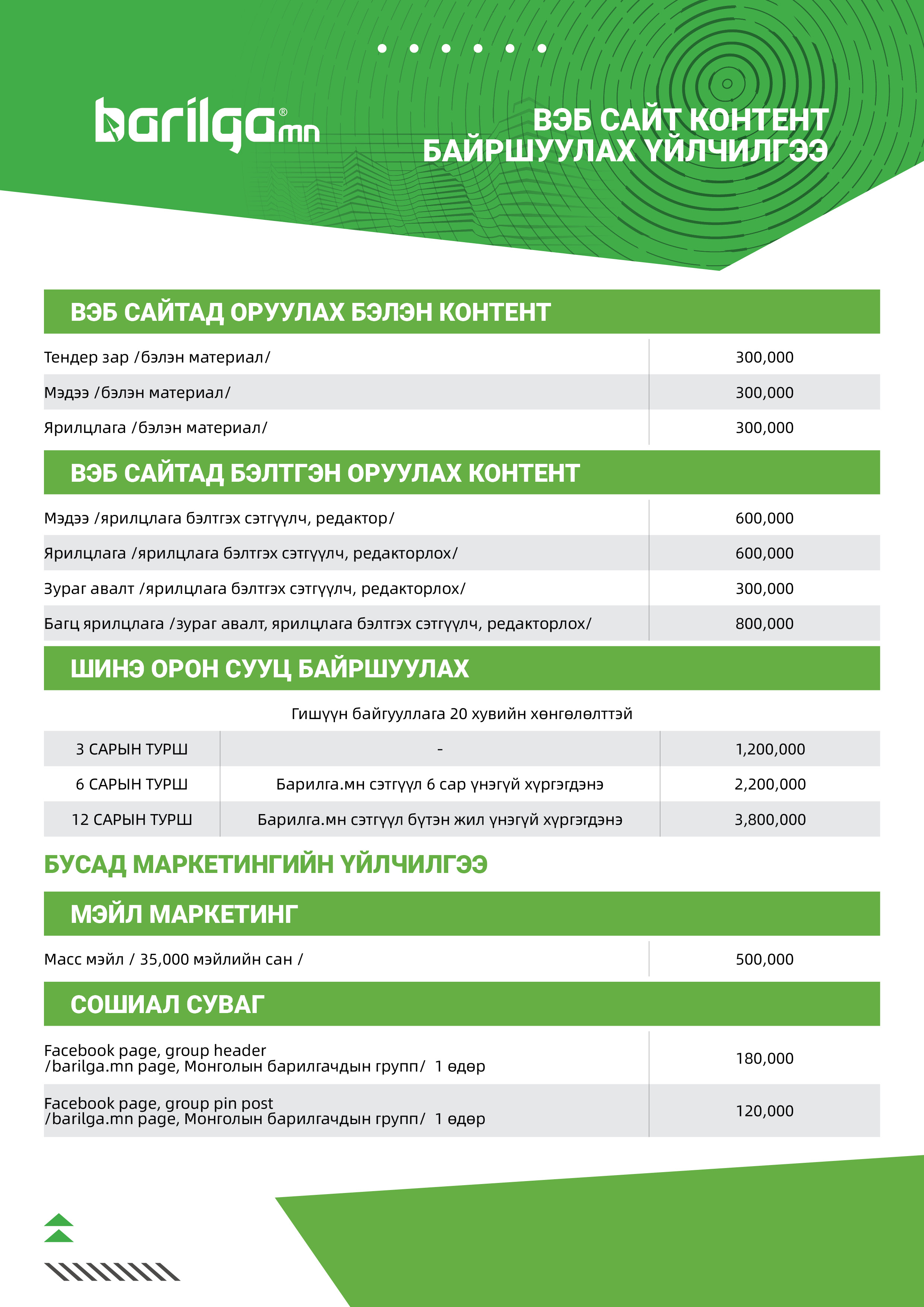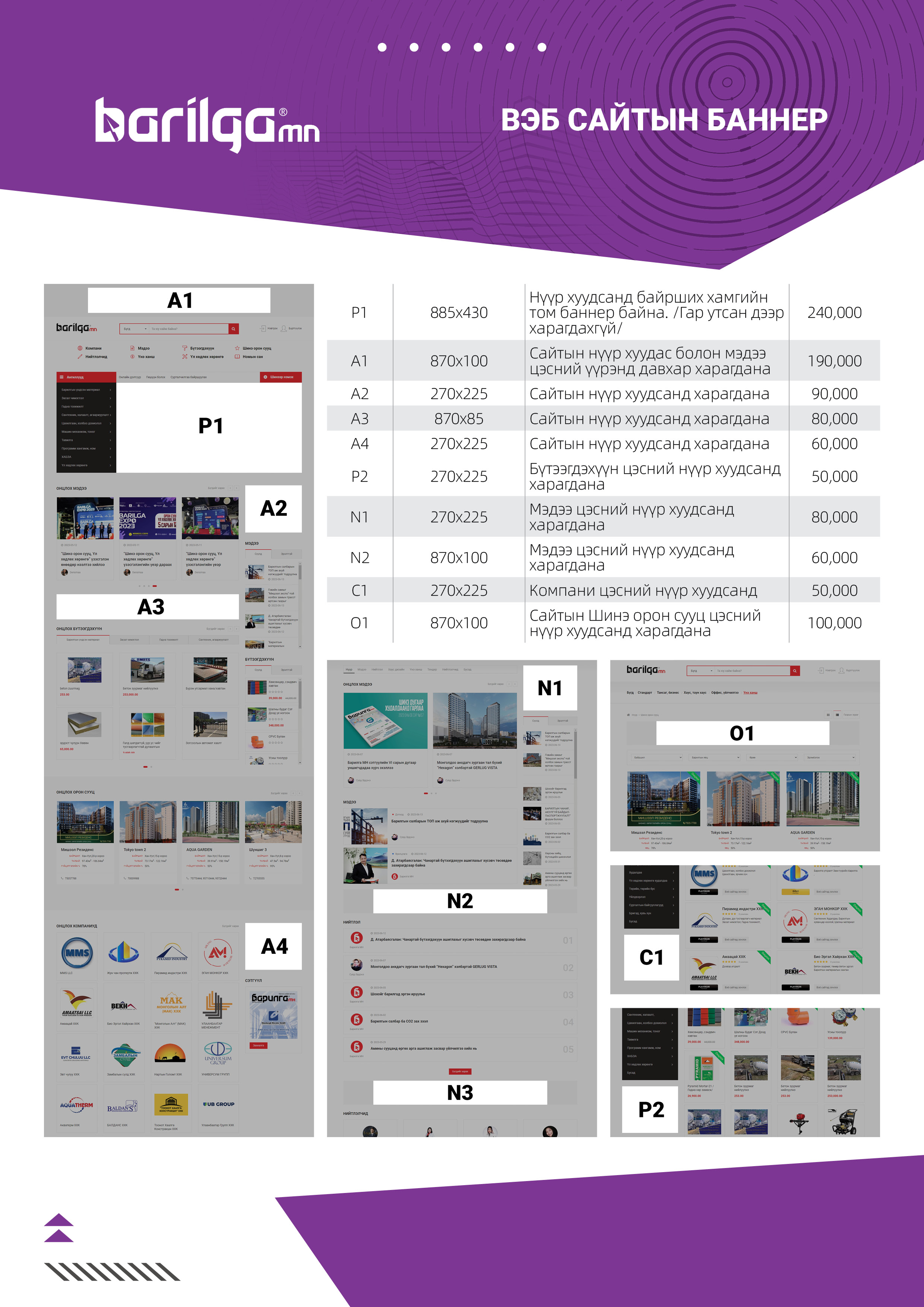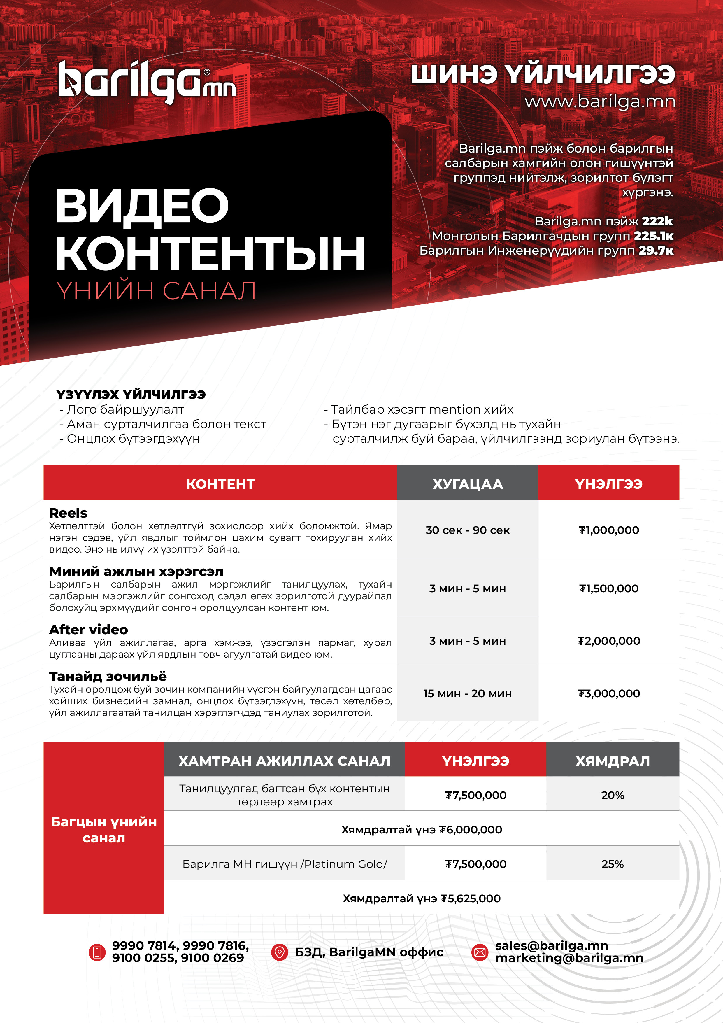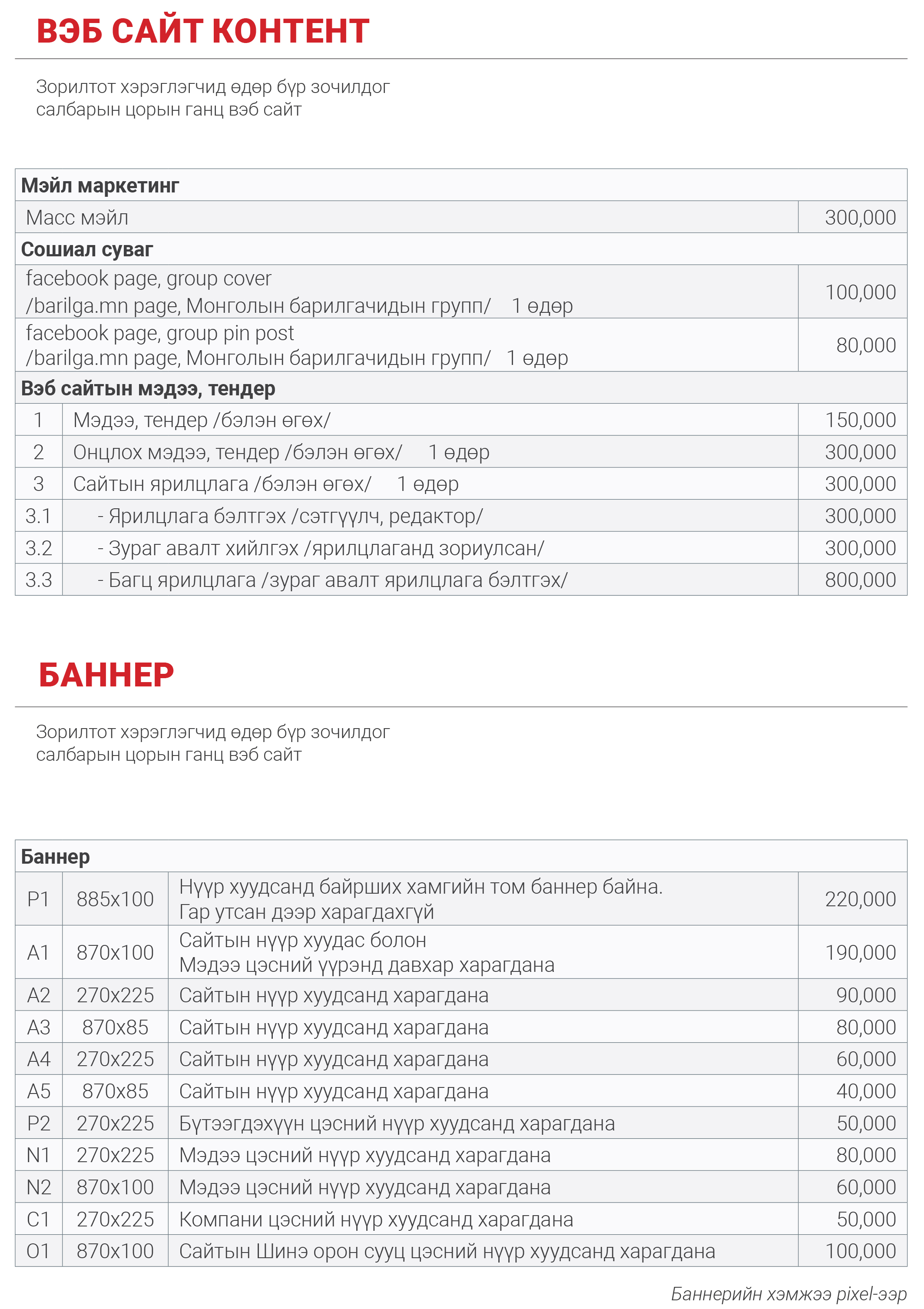 “БАРИЛГА МН” СЭТГҮҮЛ дээр сурталчилгаа байршуулах үнийн санал