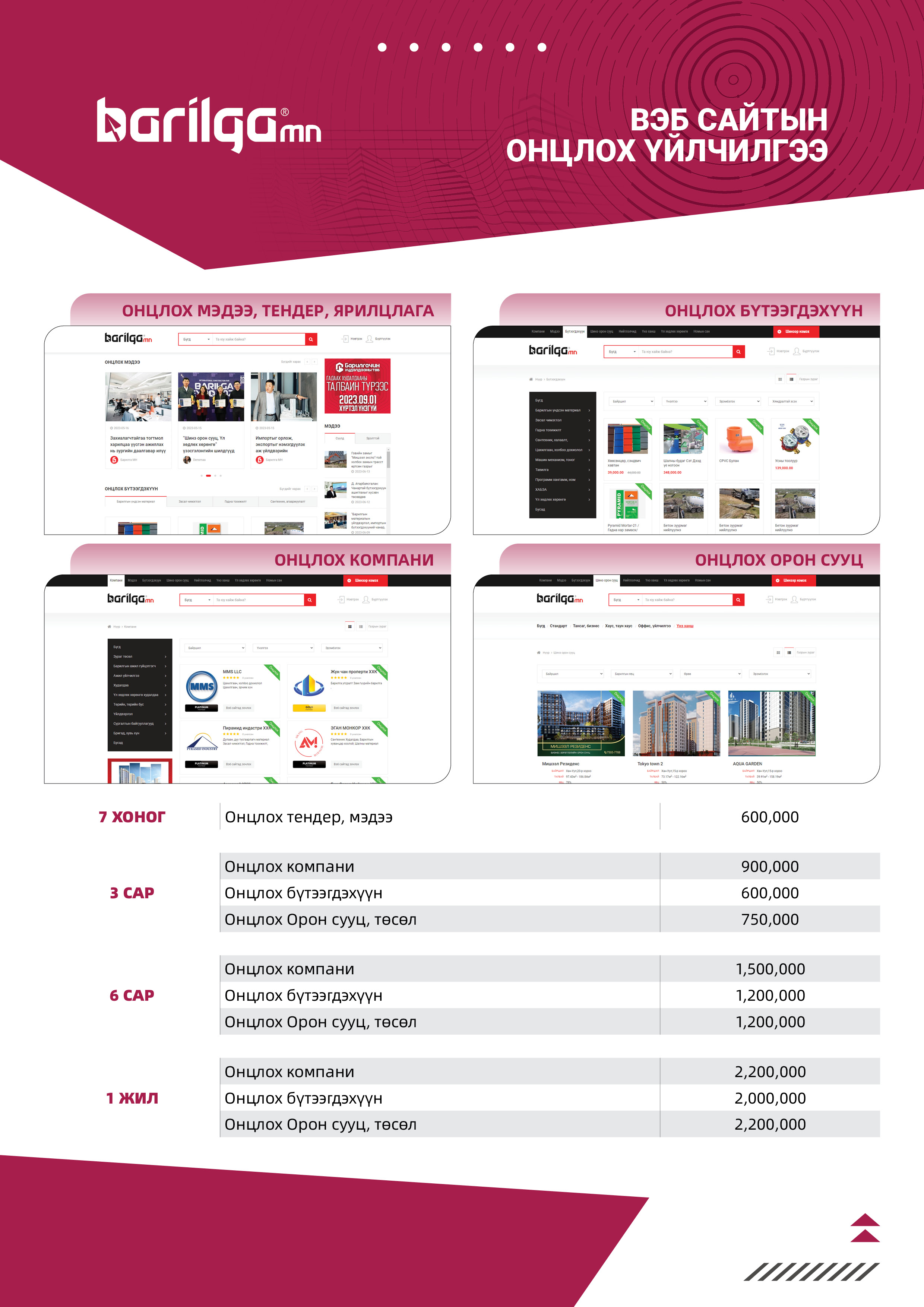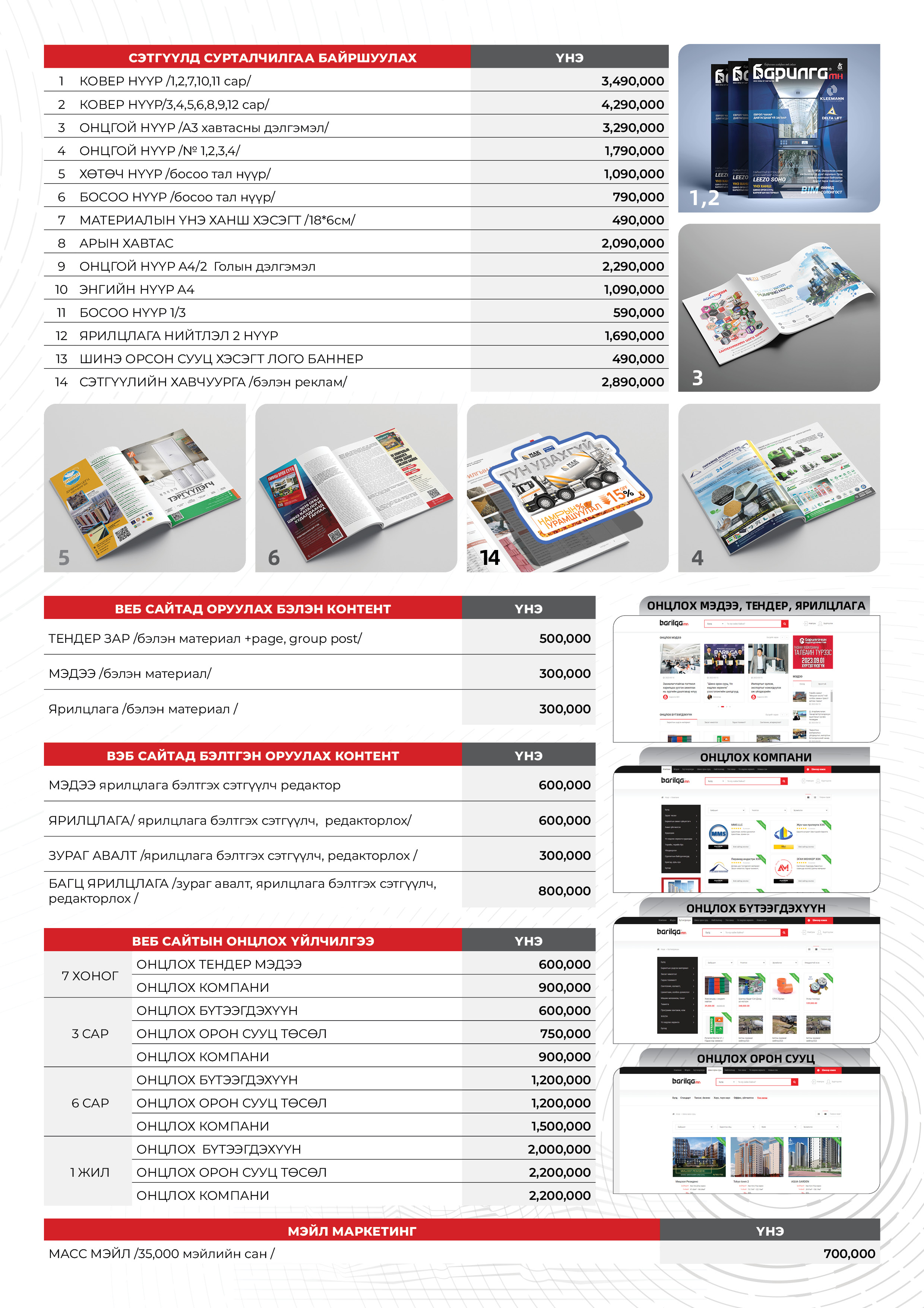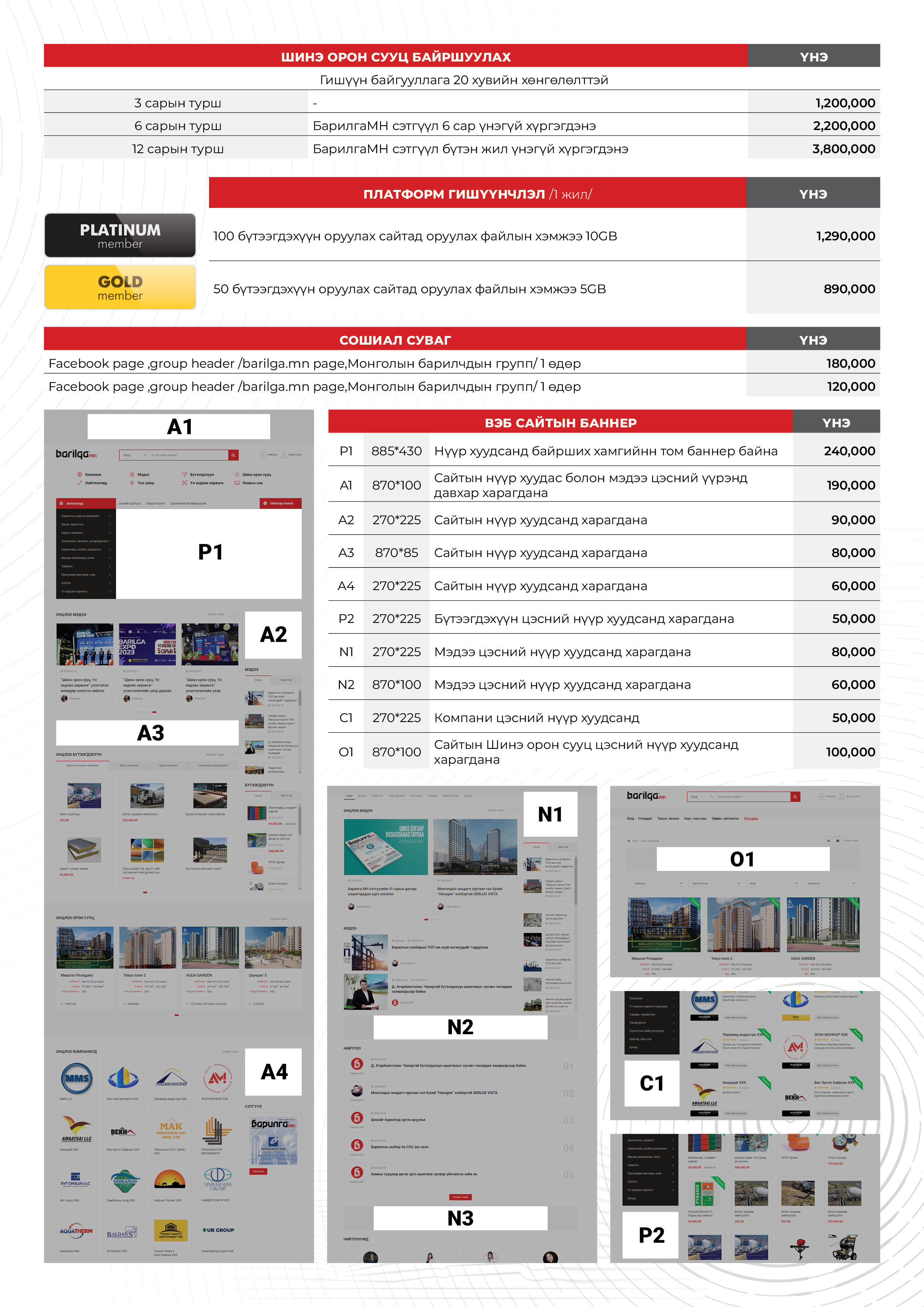 www.barilga.mn платформ дээр гишүүн болох сурталчилгаа байршуулах үнийн санал