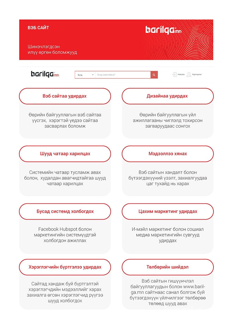 Манай дэд сайтын систем нь хэрэглэгч вэб хэлний мэдлэггүй ч вэбсайтаа засварлах, шинэчлэлт хөгжүүлэлт хийх боломжоор хангана
