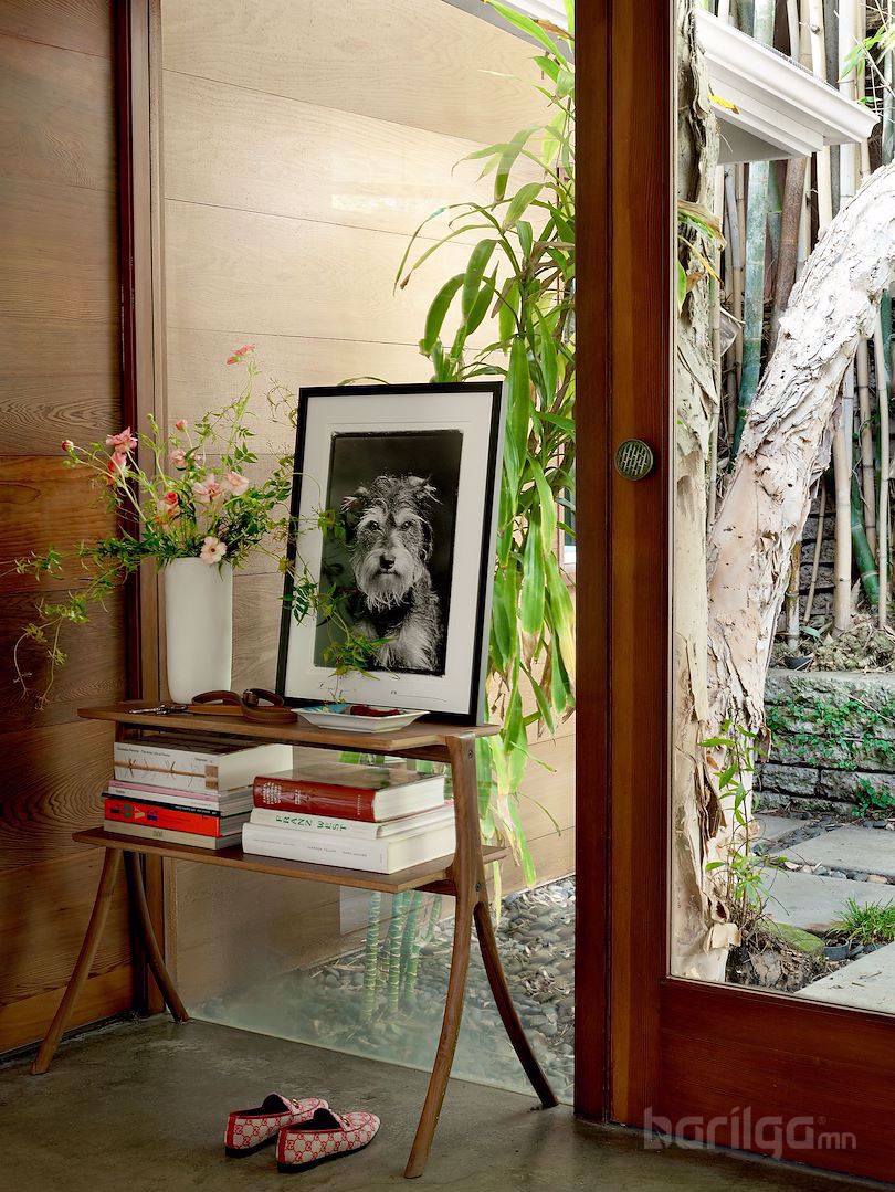 Ажлын өрөөнийх нь хамгийн дуртай хэсэг нь хананд суурилуулсан хүрэн өнгийн модон номын тавиур. Харин түүний дуртай өнгө нь ногоон. Тиймээс ч гал тогооны тавилгаа Pierce & Ward -д санал тавьж ногооноор будуулжээ.