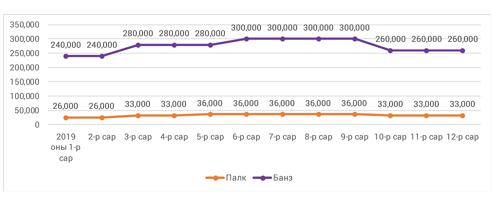 Нэг ширхэг палкныүнэ оны эхний 2 сард 26,000 төгрөг байснаа 3-р сараас 7,000 төгрөгөөр, 5-рсараас 10,000 төгрөгөөр нэмэгдэж 36,000 төгрөг болсон нь барилгын ажил эхэлж иххэрэгцээ үүссэнтэй холбоотой ба 10-р сараас 3,000 төгрөгөөр багассан байна. Мөннэг м3 банзны үнэ 3-р сараас 40,000-60,000 төгрөгөөр нэмэгдээд 280,000-300,000төгрөг болсон байна.