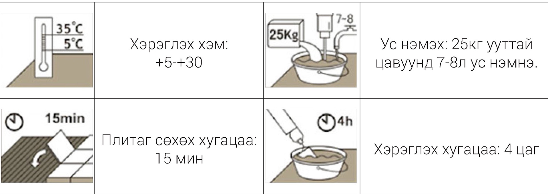 Плитаны цавуу нь 1м2-д 6-8 кг ордог.