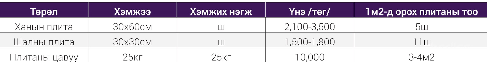 Нэг м2-д орох плитаны тоо, цавууны хэмжээг яаж мэдэх вэ