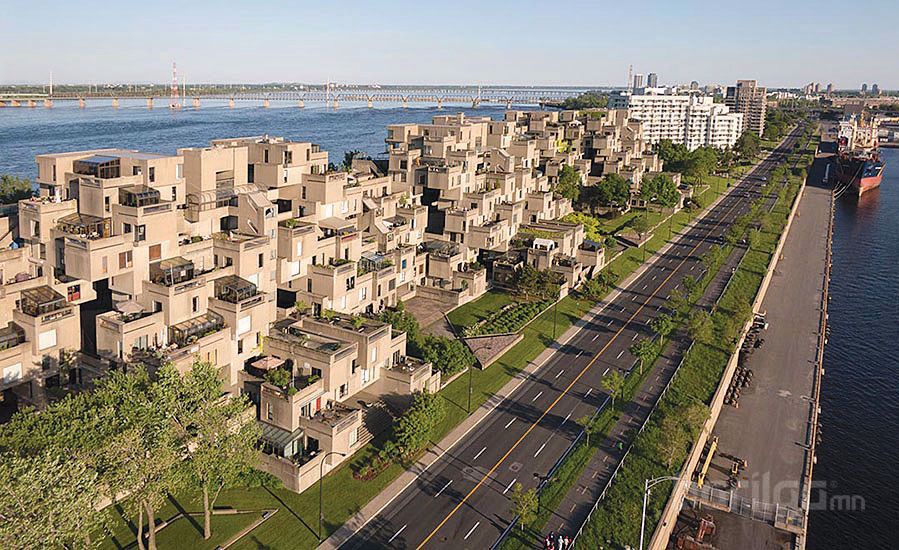 Дэлхийд танигдсан орон сууцны цогцолборын нэгийг архитектор Моше Сафди 1966-1967 онд зохион бүтээж, “Монреаль Экспо-67” үзэсгэлэнд танилцуулсан байна. Авьяаслаг шинэхэн архитекторын төгсөлтийн ажил нь арав гаруй жилийн турштогтсон нэг хэв маягийн шийдлээс татгалзаж өвөрмөц, шинэлэг архитектурын хэвмаягаар бүтээгдсэн байна. Хабитат (“Амьдрах орчин”) нэр нь төслийн өвөрмөц байдлыг илэрхийлдэг ба энэхүү 12 давхар орон сууцны цогцолбор нь яг ижил төстэй элементүүдийн нарийн төвөгтэй эмх замбараагүй хэлбэлзэлтэй 354 цутгамал төмөрбетон модулиудаас бүрддэг. Модуль бүр нь өөрийн гэсэн ногоон цэцэрлэгтэй, бие даасан орон сууц юм.
