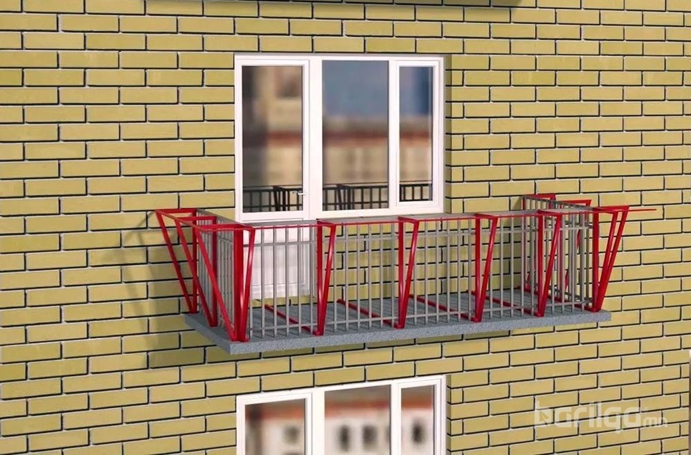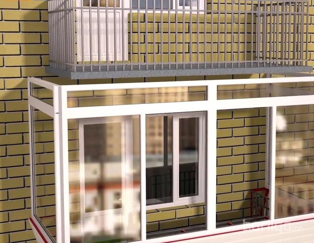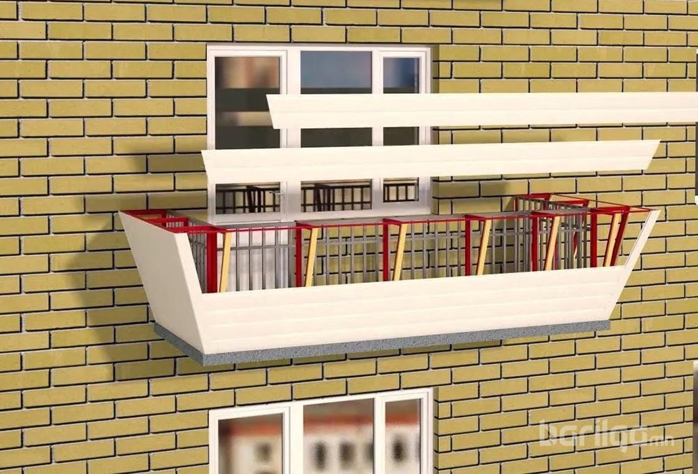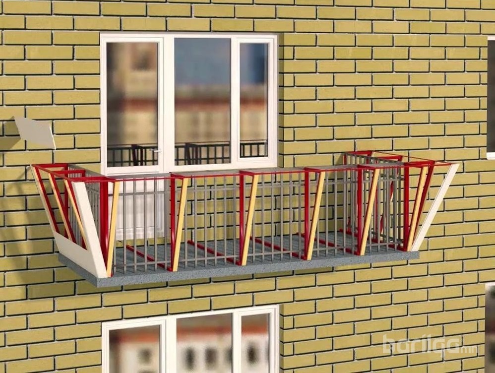 2. Ийнхүү нэмэлт хүрээ төмрийг металл хашлагын гадна талд суурилуулахад тагтны урт, өргөн нь 30-50 см-аар нэмэгддэг. Нэмэлт хүрээг дээд хэсэгт нь тагтны металл хашлагын бариултай, доод хэсэгт нь төмөр бетон хавтантай бэхэлнэ.