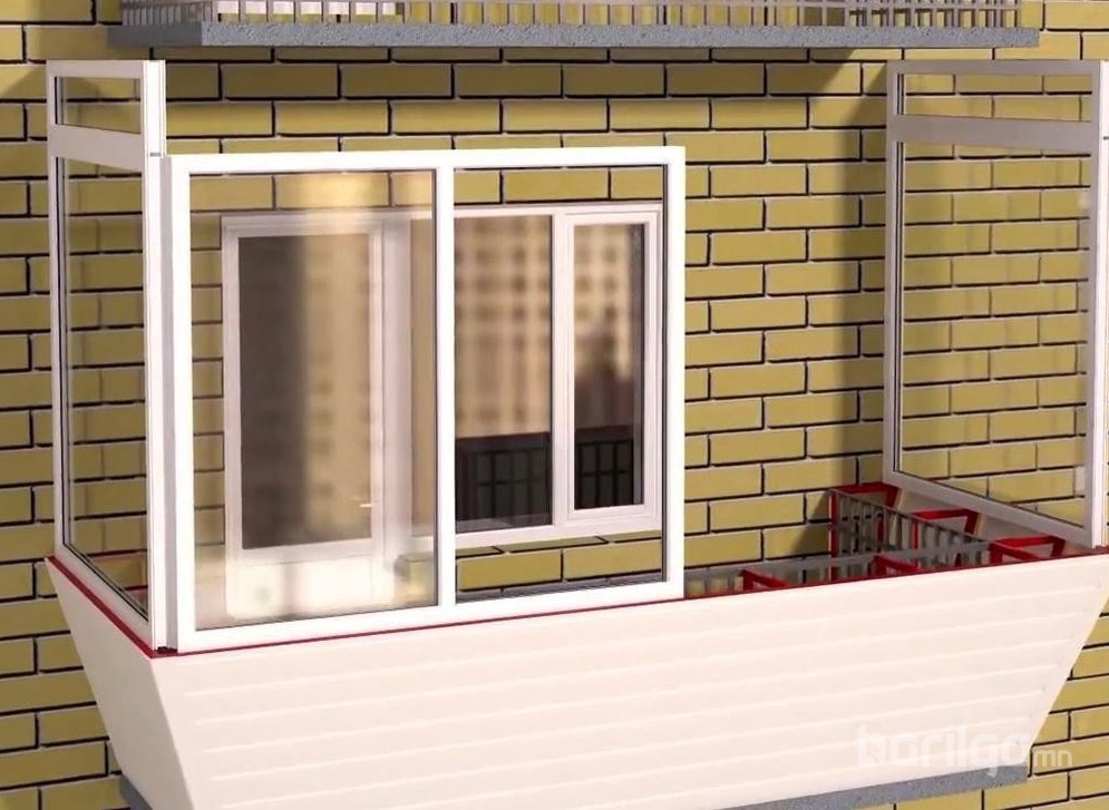 6. Дараа нь хөнгөн цагаан, эсвэл хуванцар цувимал хүрээ бүхий цонхуудыг угсарна. Ингэхдээ эхний ээлжинд хоёр хажуугийн цонхыг угсарч, тагтны саравч болон хөвөөнд найдвартай бэхэлж, зай завсрыг битүүмжилнэ.