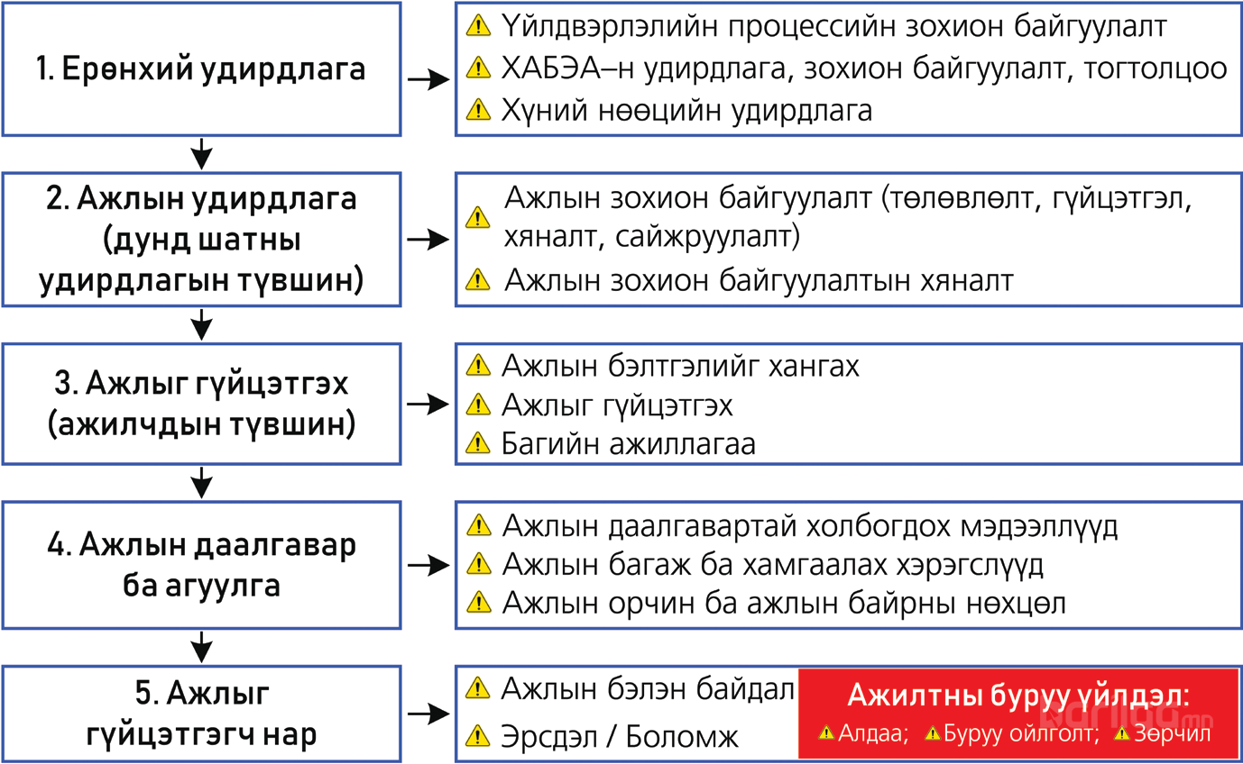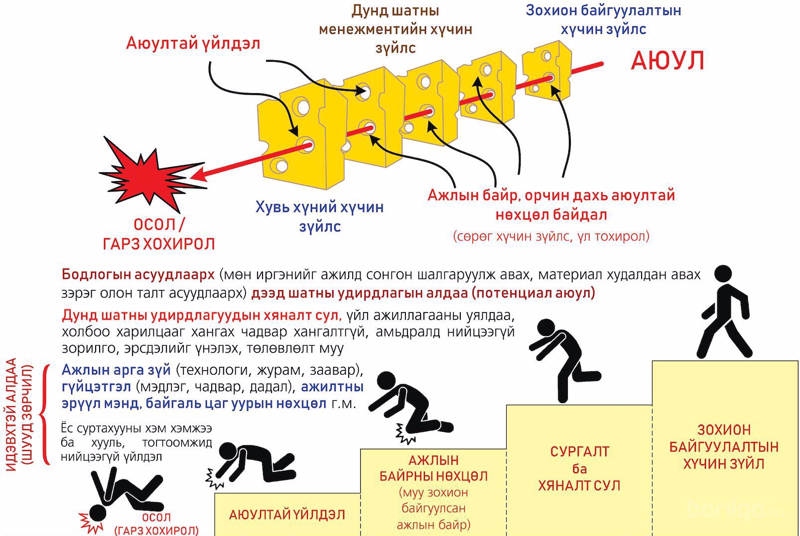 - Ажилтныг аюулгүй ажиллагаанд сургаж дадлагажуулах тогтолцоо нь алдаатай, эсвэл тогтолцоо бүрдээгүй,