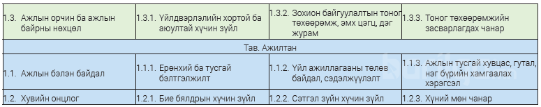 - Хөдөлмөрийн нөхцөл;