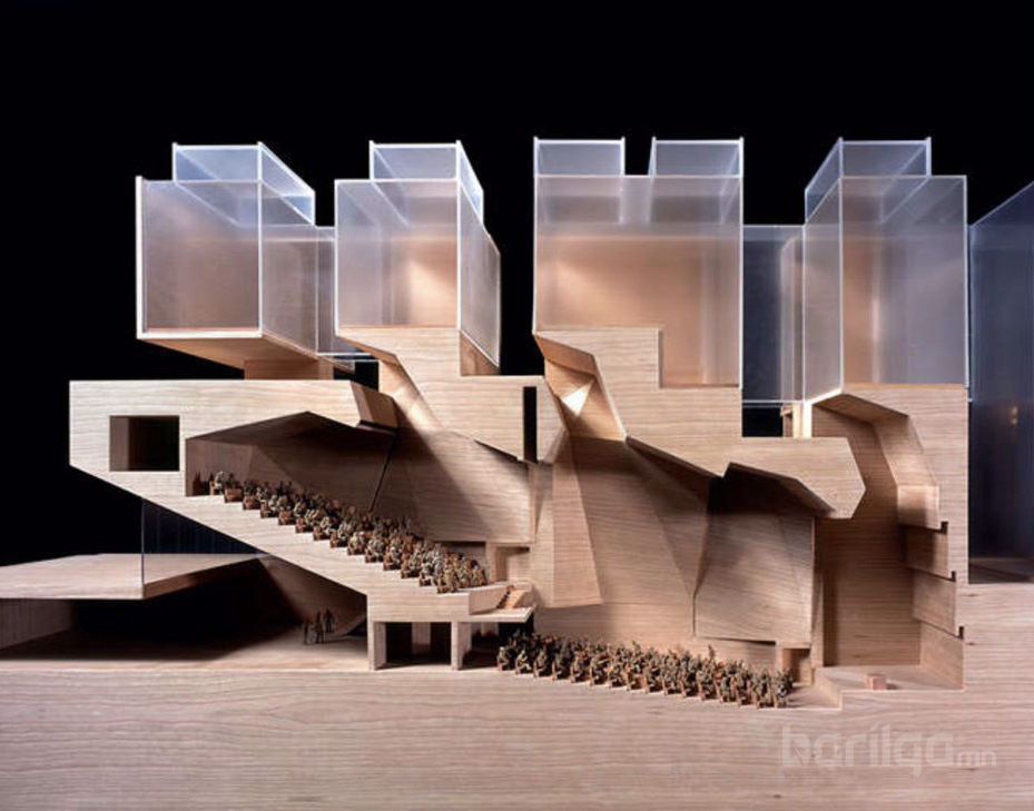 Уг урлагийн төвийн зураг төслийг 1780м2 талбайд багтаан 2007 онд бүтээжээ. Гаднаас харагдах байдал геометрийн тэгш өнцөгт хэлбэртэй. Үзэгчдийн ая тухыг хангахын тулд доод давхар 320 хүний суудалтай үзвэрийн танхим байхаар зохицуулсан байна. Уг танхимыг Германы архитектор Ханс Шарунын театрын зураг төсөл дээр үндэслэн үзэгчид болон тайз хоёрын хооронд динамик урсгалыг бий болгох шийдэл гаргасан юм. Найруулагч, жүжигчид, шүүгчид нь хоорондоо харилцан уялдаатай ажиллах шаардлагатай