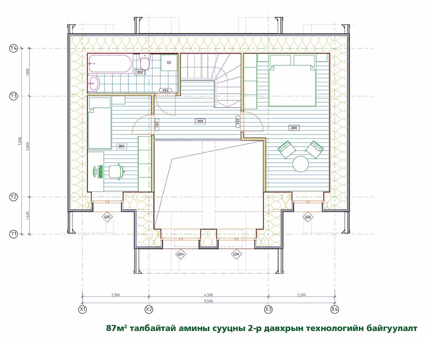 - 2-р давхарт 2ш унтлагын өрөө, ванны өрөө, амраххэсэг зэргийг төлөвлөсөн ба бараг бүх өрөө нь өөрийн гэсэн давуу талуудтайбайхаар төлөвлөв.
