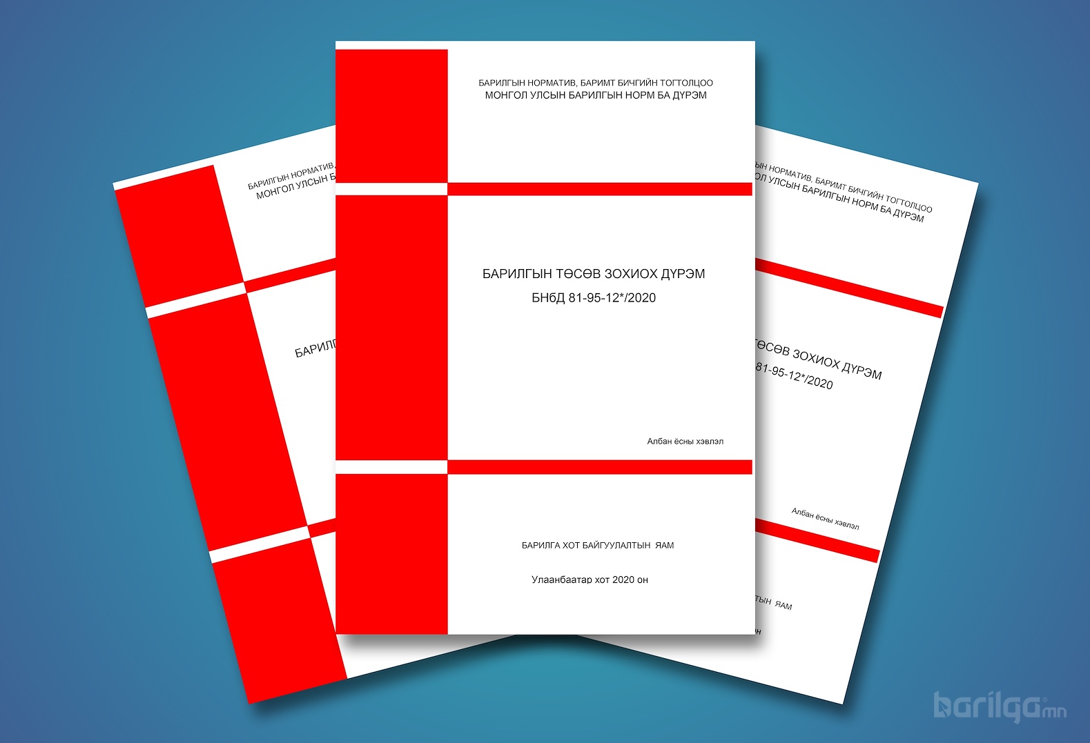 Тав. Зураг төслийн ажлын жишиг үнэ /БД81-16-12/ ЗТБХБС-ын 2012 оны 182 дугаар тушаалаар батлагдсан. Батлагдсанаас хойш 8 жил мөрдөгдсөн. Иж бүрэн барилгын зураг төслийг зохиоход архитектор, инженер техникийн ажилчдын оролцоотой үе шаттай ажлууд хийгддэг. Зураг төсөл гэдэг бол манай архитектор, инженерүүдийн норм дүрмээ баримталж хийсэн оюуны бүтээл, барилгыг цаасан дээр төлөвлөж, газар дээр барихын тулд инженерийн тооцоо, барилга архитектур, барилгын бүтээц, технологи, шугам сүлжээ гэх мэт бүх үе шатны ажлын холболтыг хийж ажиллахад цаг хугацаа ихээхэн зарцуулагддаг. Статистик судалгааг үндэслэн хэрэглээний үнийн 2012 оноос хойших индекстэй уялдуулаад Зураг төслийн ажлын жишиг үнэ /БД81-16-20/ барилгын дүрмийг Монголын барилгын зураг төсөл зохиогчдын холбоо боловсруулж тогтолцооны баримт бичгийн дагуу үе шатны ажлыг хийж, зохион байгуулж БХБЯ-нд батлуулахаар хүргүүлээд байна.