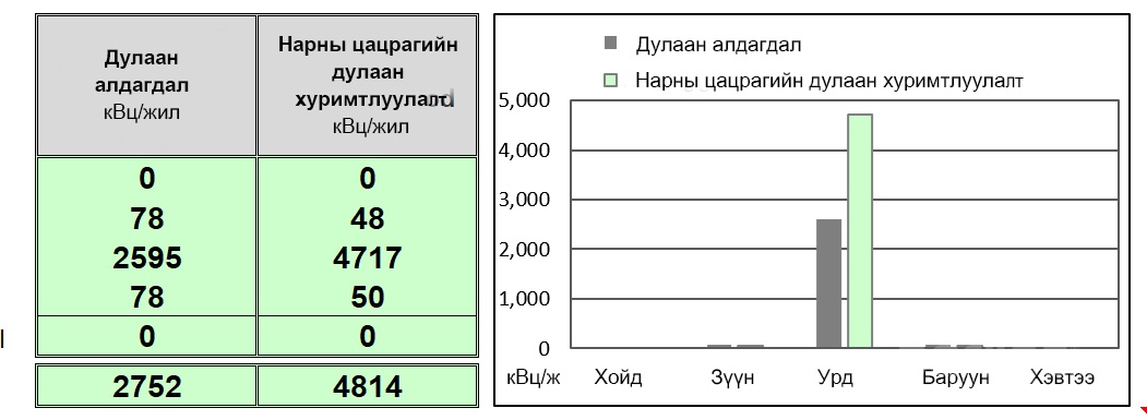 Зураг 4. Дулаан алдагдал, нарны цацаргын дулаан хуримтлуулалтын харьцуулалт