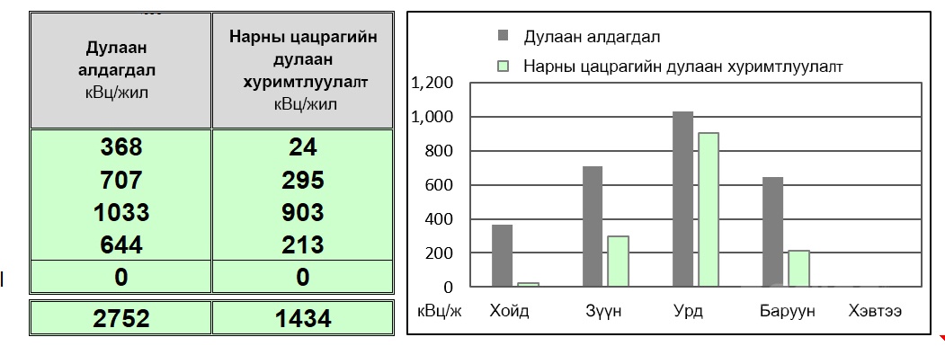 Зураг 2. Халаалтын эрчим хүчний балансын диаграмм