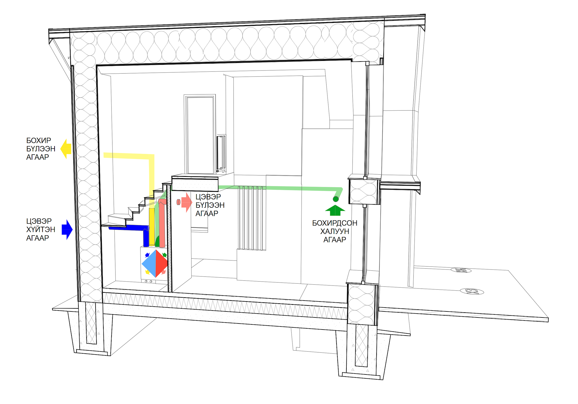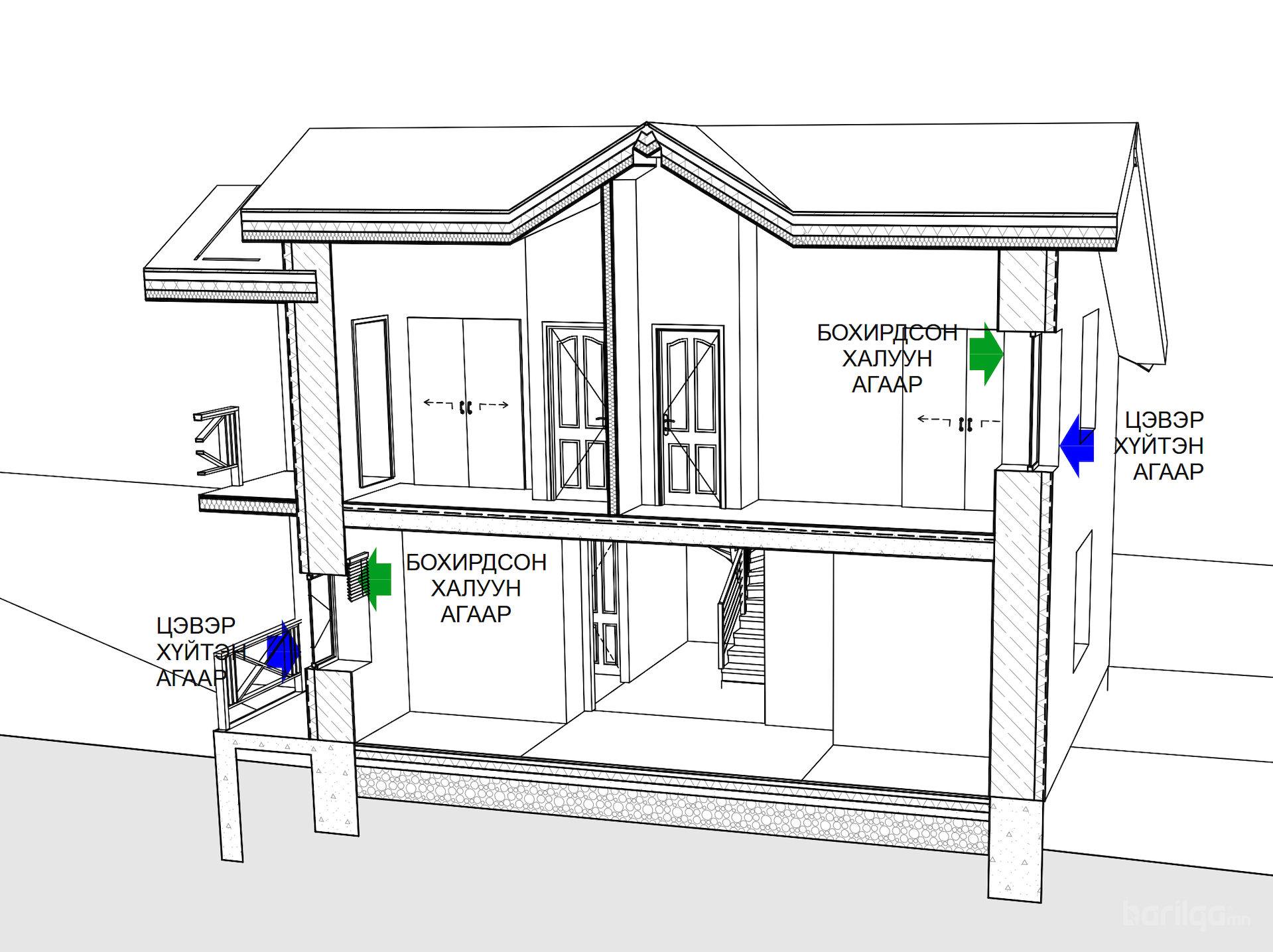 А сууц Ердийн систем Б сууц Дулааны солилцууртай агааржуулалт