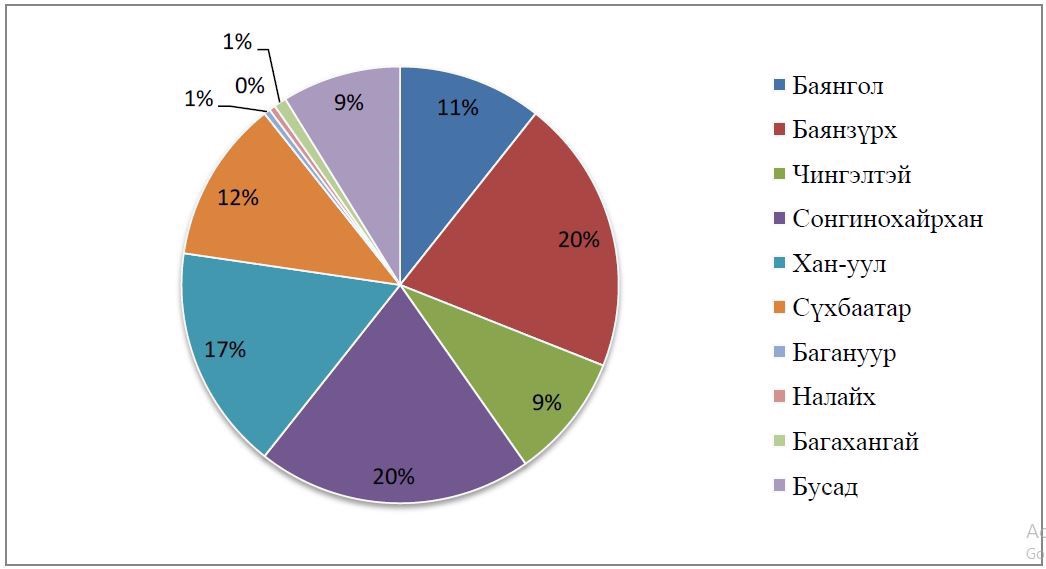Зураг 1. Бригадуудын үйл ажиллагаа явуулж буй байршил, дүүргээр
