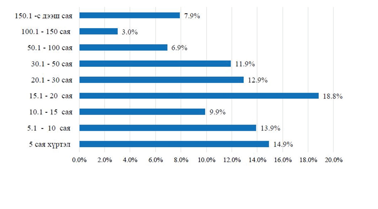 Зураг 7. Ажилтай үеийн нэг гишүүний нэг өдөрт олж буй орлого дунджаар