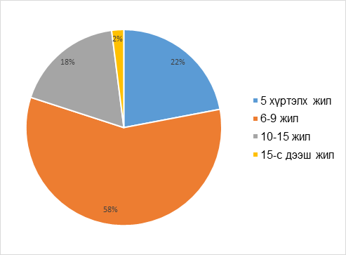 Зураг 3. Бригадуудын барилгын салбарт ажилласан туршлага, жилээр