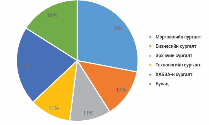 Судалгаанд хамрагдсан бригадуудаас 28.3 % нь мэргэжлийн, 21% нь ХАБЭ,12.7% нь бизнесийн, 11% нь эрх зүйн болон технологийн сургалтуудын хэрэгцээ шаардлагатай байгааг илэрхийлжээ.