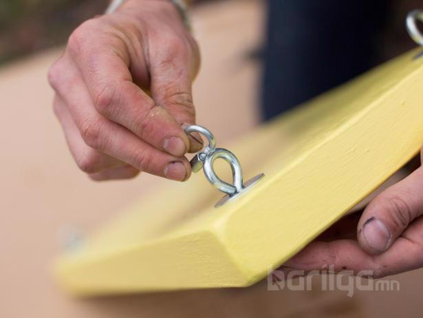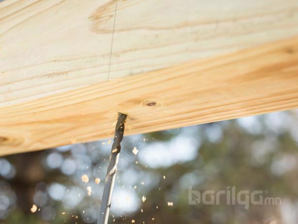 Урт хэмжигч метр ашиглан 53см тутамд тэмдэглэж, цооног хэлбэрээр өрөмдөнө, дараа нь 18см төмөр дэгээг боолт, гайк ашиглан нүхэнд бооно.