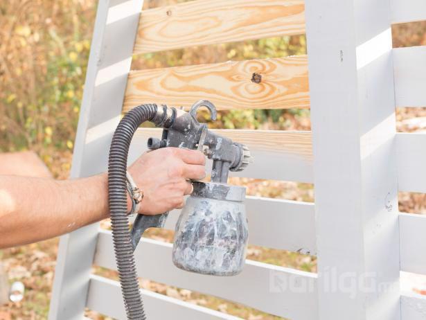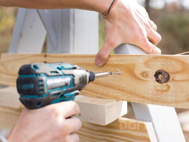 2х6 хэмжээтэй харуулдсан 3 ширхэг банзыг 53 см урттай тайрч гурван суудлыг байрлуулаарай. Дөрвөн буланд нүх гарган өрөмдөж, дараа нь будгийн багс эсвэл мини өнхрүүш ашиглан гадна талыг будна.