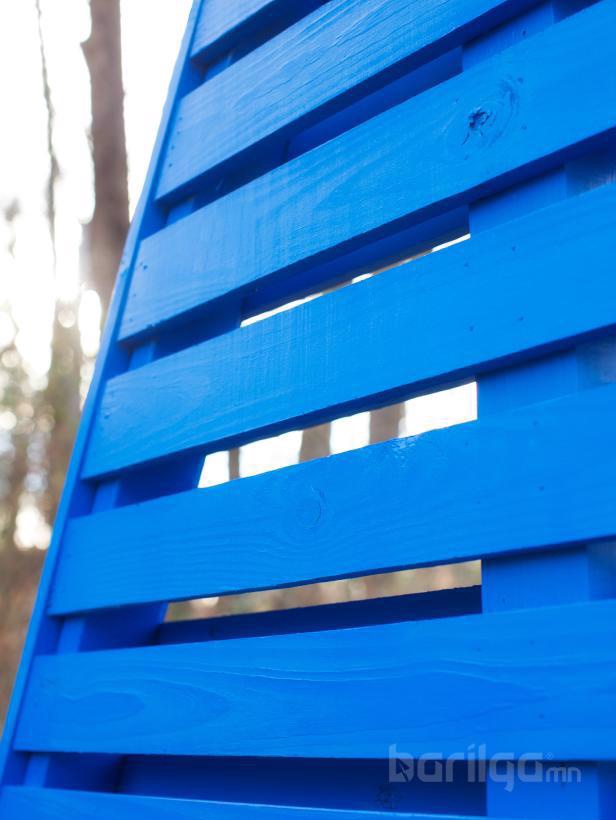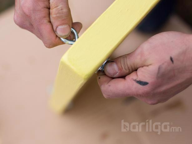 Будаг шүршигч ашиглан “А” хэлбэрийн рамны бүх модон гадаргууг бэхэлж, суурь будгаар будна. Өөрийн хүссэн өнгийг сонгоод суурь будаг хатсаны дараа савлуураа бүхэлд нь будна.