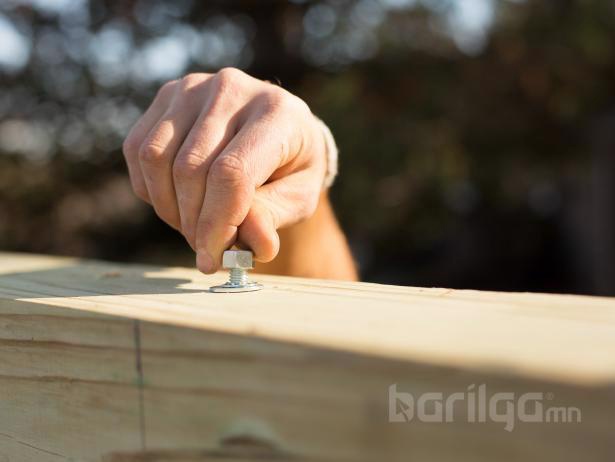 Палкны төмөр тогтоогч ашиглан 6x6x12 хэмжээтэй модон палкаа 2 ширхэг 4x4x10 хэмжээтэй модон палктай “П” хэлбэр гарган холбоно.