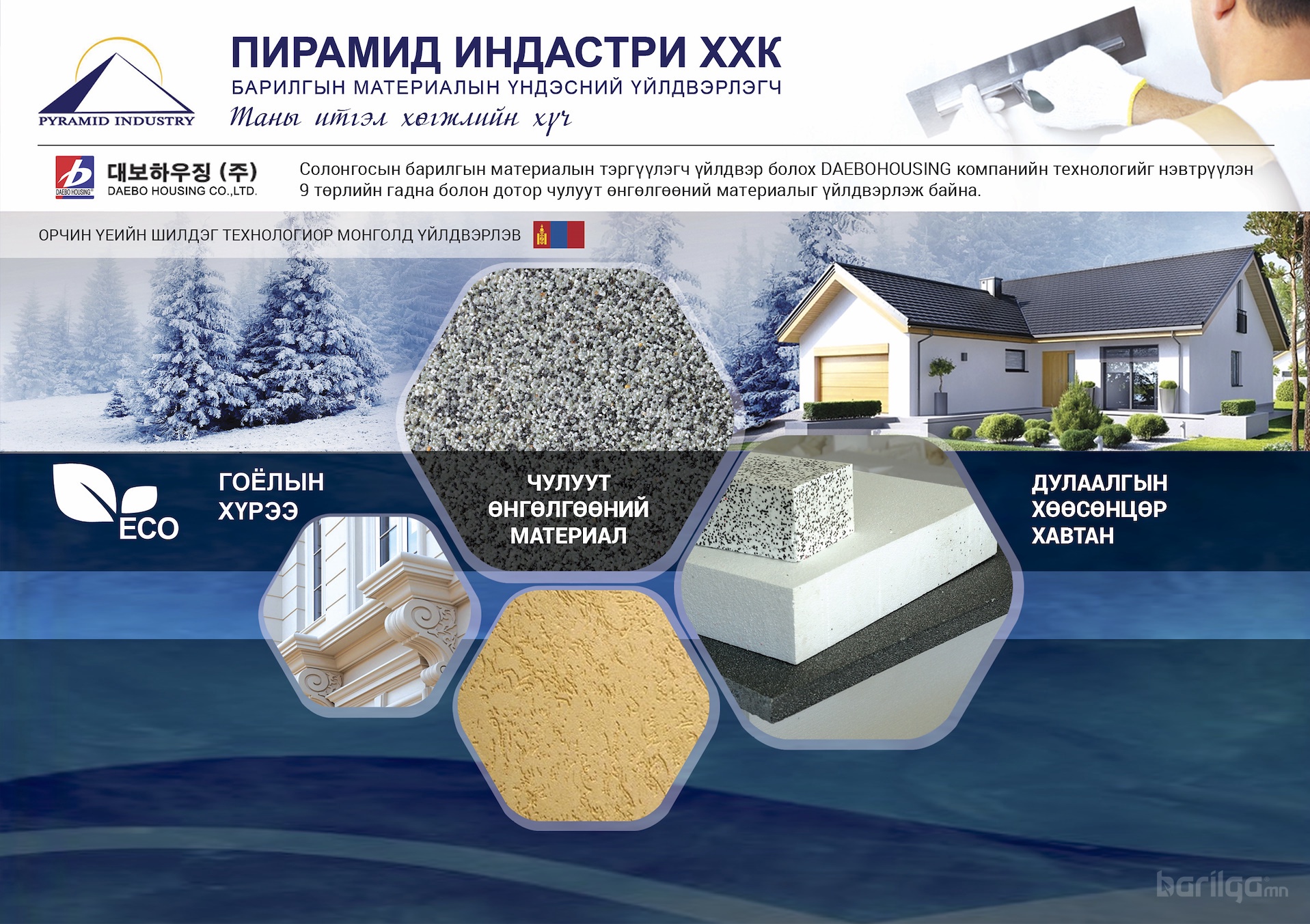Тэгэлгүй яахвэ. Тиймээс л бид хамгийн сүүлд энэ галд шатддаггүй хөөсөнцөр хавтангийн үйлдвэрээ зах зээлд амжилттай нэвтрүүлж, нийлүүлж байгаа. Хөөсөнцөр хавтангийн давуу тал маш их. Хамгийн наад зах нь л хөөсөнцрөөр дулаалсан фасад хамгийн багадаа хагас зуун жилийн настай. Хамгийн хөнгөн дулаалгын материал боловч дуу, дулаан тусгаарлах чадвар маш сайн. Үндсэндээ ногоон барилгын бүтээгдэхүүн.