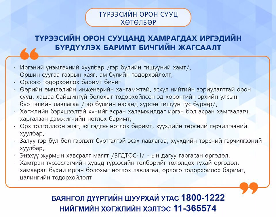 “Түрээсийн орон сууц” хөтөлбөрт хамрагдах хүсэлтэй Баянгол дүүргийн иргэн та дараах сувгаар дэлгэрэнгүй мэдээллийг авах боломжтой.