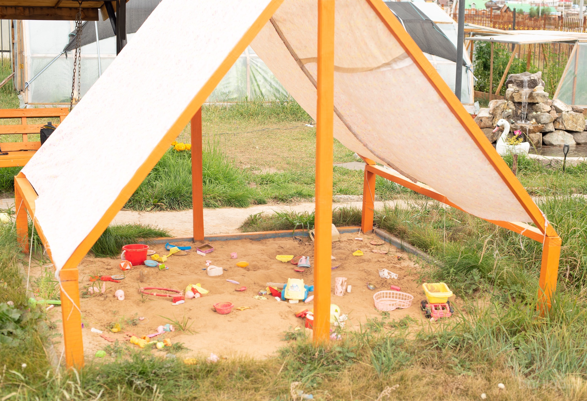 Үүнээс гадна хашаагаа тохижуулж төмөр хашаа, сүүдрэвч, усан сан, хүлэмж 2 төрлөөр, элсний талбайтай сүүдрэвч, савлуур, хогийн сав 2 төрөл, хун шувуу том, жижиг 4, үүдний сандал зэргийг өөрсдөө хийж бүтээсэн.