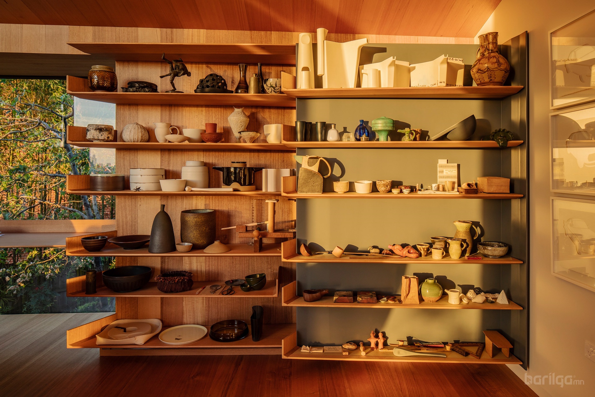Мөн өрөөний нэгээхэн хэсгийг Японы баримлын цуглуулгын хэсэг болгон тохижуулсан байна.