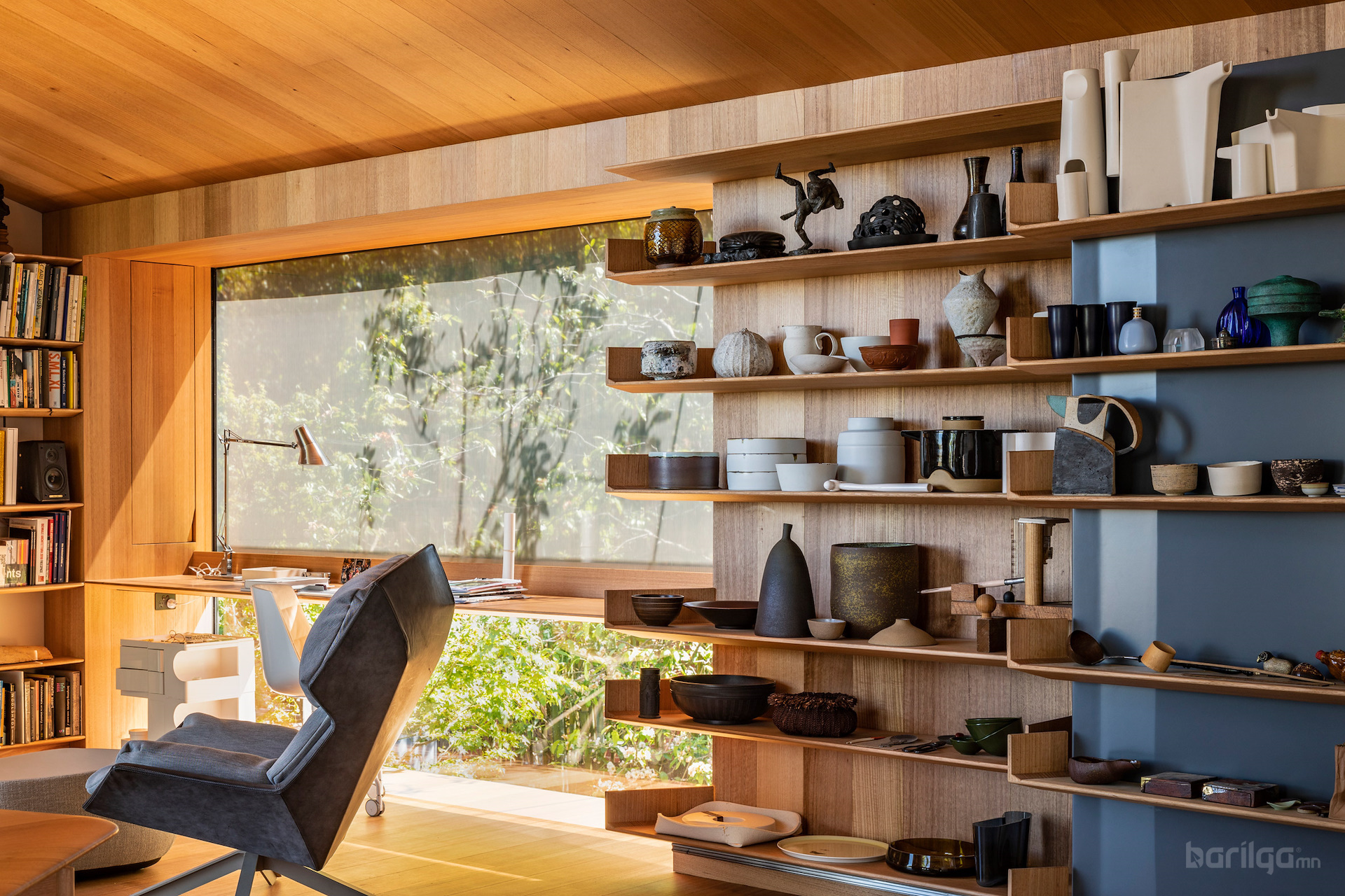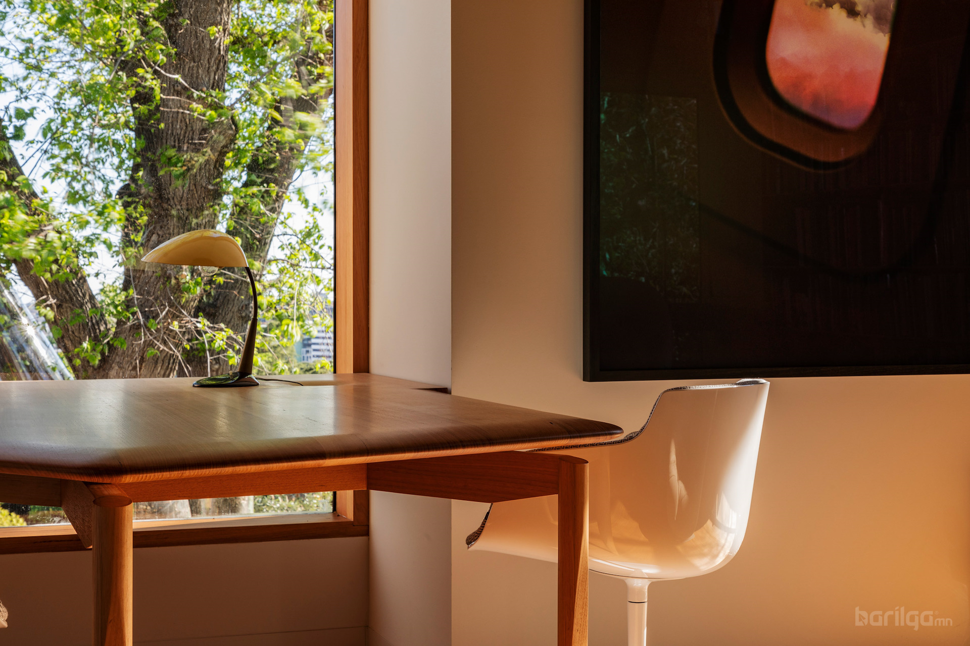 Ажлын өрөө, номын сан: Энэ өрөөнд бүх л өдрийн турш нар тусдаг учраас судалгаа хийх, анхаарлаа төвлөрүүлэн, олон цагийг өнгөрүүлэхэд таатай нөхцөлийг бүрдүүлжээ.