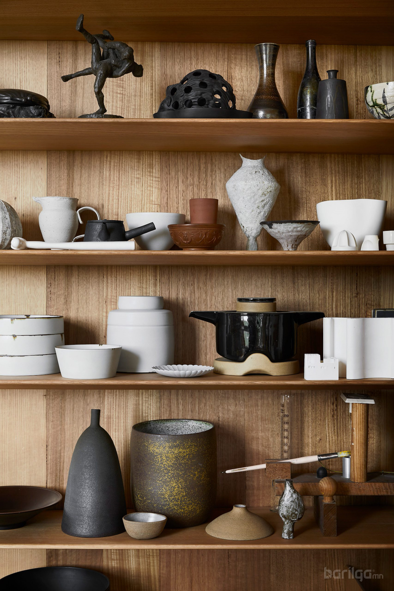 Мөн өрөөний нэгээхэн хэсгийг Японы баримлын цуглуулгын хэсэг болгон тохижуулсан байна.