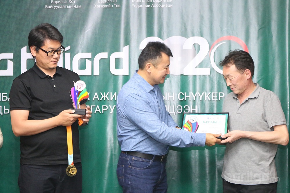Энэхүү тэмцээнийг ”TRG констракшн” ХХК -ийн “Elit snooker club” ивээн тэтгэгчээр оролцож, Барилга, хот байгуулалтын яам, Барилгын хөгжлийн төв, Монголын барилгын үндэсний ассосиаци нар дэмжиж ажилласан бөгөөд та бүхний цаашдын ажил хөдөлмөрт өндөр амжилт хүсье.