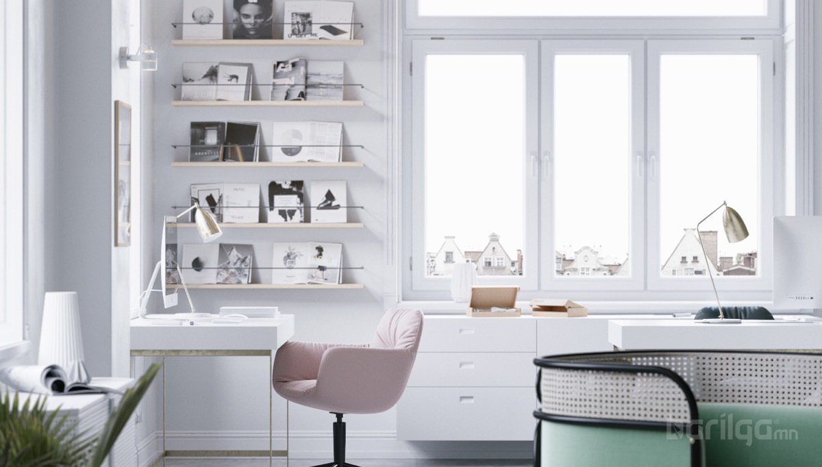 Та тохирох цэгээ олоод өнгөний шийдэл, ширээний загвар, сандлын хэв маяг, тавиурын хэрэгцээ, бичиг баримт хадгалах тавилгын талаар эргэцүүлэх хэрэгтэй болно. Тиймээс дараах 50 шийдлийг санал болгож байна.