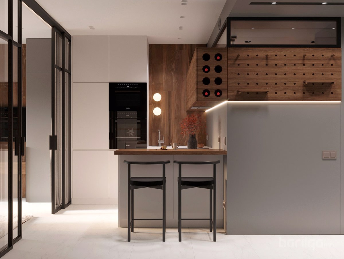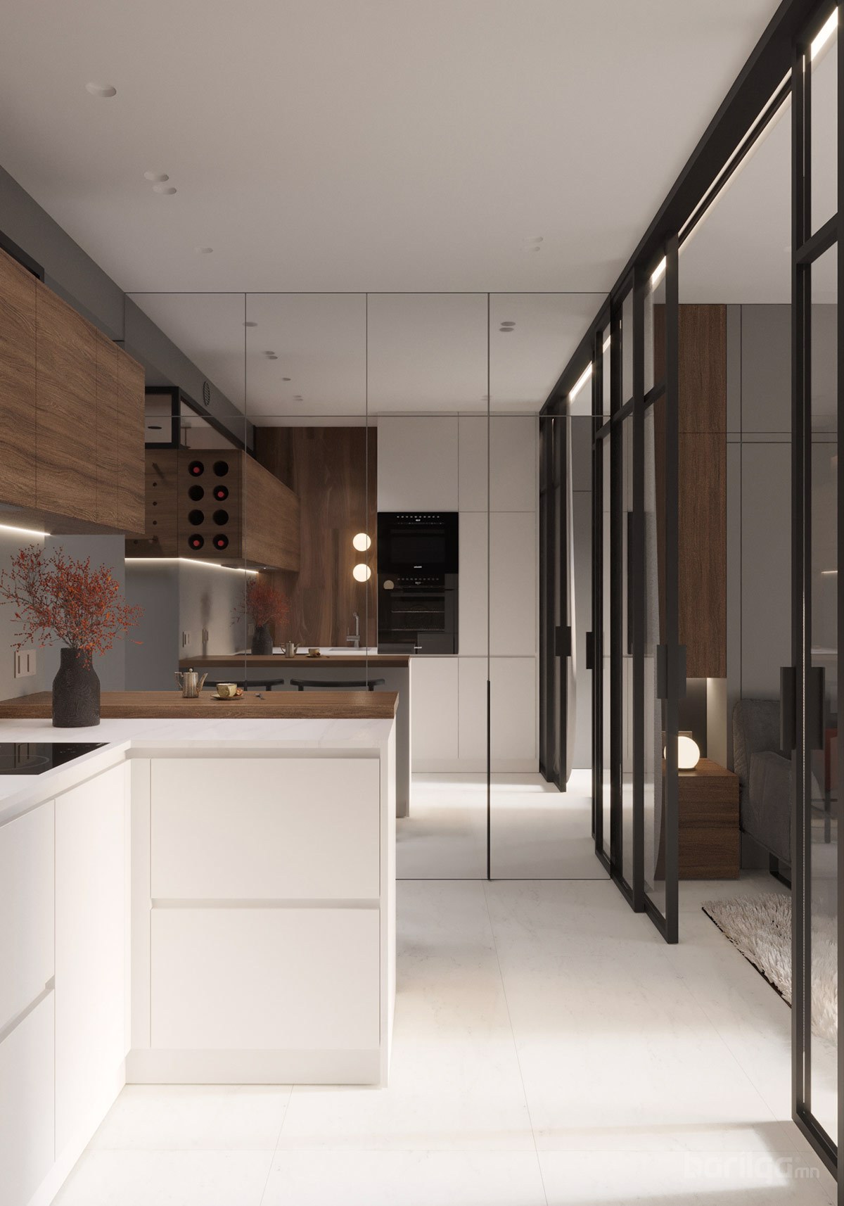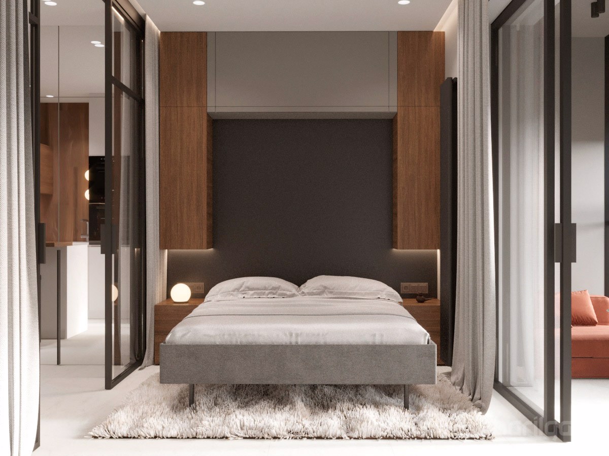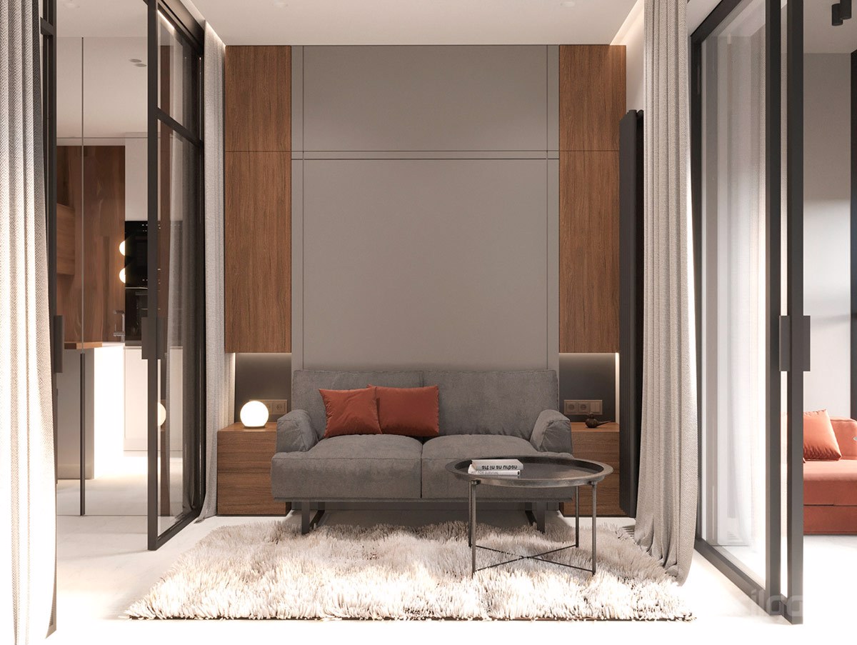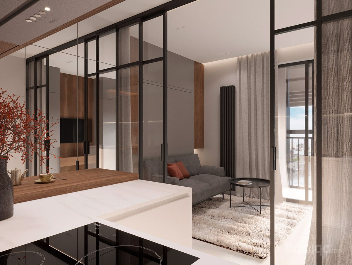 Бидний дараагийн аялал ОХУ-ын Москва хотод байрладаг оро сууцанд явагдана. Энэхүү 30 метр квадрат интерьер дотор хүрэн, саарал өнгөний зөөлөн тавилгаас үүдэн тайван дулаахан уур амьсгал ургадаг. Шилэн хана нь зочны өрөөний хоёр талыг дайрч, төвд нь буйдан байрлуулсаар зочны өрөөг гал тогооны өрөөнөөс тусгаарлаж буланд нь суудлын буйдан тавьж өгснөөр маш бага зайнд амралтын хэсгийг шийдэж өгсөн байна.