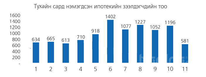 2020 оны 10 сараас эхлэн ипотекийн зээлийн хүү 6% болон буурснаар бага, дунд орлоготой иргэд үл хөдлөх хөрөнгөтэй болох боломж бүрдлээ. Тухайн сард гэхэд нийт 926 зээлдэгч 65.7 тэрбум төгрөгийн зээлийг жилийн 6 хувийн хүүтэйгээр авсан тоо баримтаас харахад 80м2 - аас бага талбайтай энгийн зах зээлийн борлуулалт огцом нэмэгдсэн гэдгийг харж болох юм.