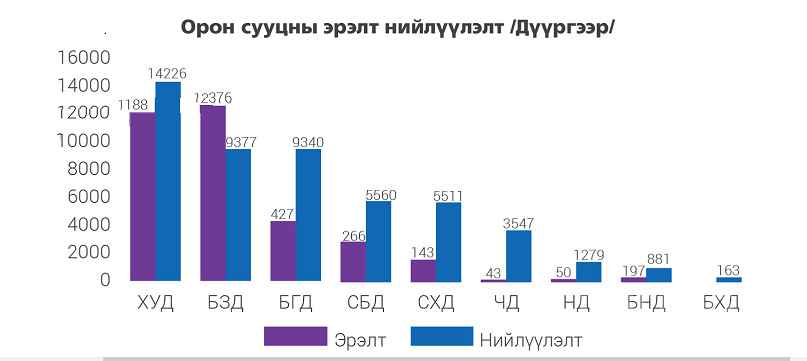 Хүн ам, орон сууцны тооллогын дүнгээс үзэхэд нийслэл Улаанбаатар хотод 411.4 мянган өрх амьдарч байгаагийн 22.2 хувь нь монгол ард түмний уламжлалт сууц болох гэрт, 77.3 хувь нь байшин болон орон сууцад, 0.5 хувь нь бусад төрлийн сууцад амьдарч байна. Хөдөө орон нутагт амьдарч байгаа нийт айл өрхүүдийн 30,3% буюу 58 838 айл өрх орон сууцад амьдардаг аж./Статистикийн хороо/ Нийслэлд одоогийн байдлаар төвийн шугам сүлжээнд холбогдоогүй гэр хорооллын 220 мянган өрх орчин үеийн бөгөөд стандартын шаардлага хангасан халаалт, усны системийг шийдсэн орон сууцад нүүх буюу одоо байгаа сууцаа өөрчлөх шаардлагатай. Энэхүү хэрэгцээ нь үл хөдлөх хөрөнгийн салбарт байнгын эрэлт бий гэдгийг харуулж байна.