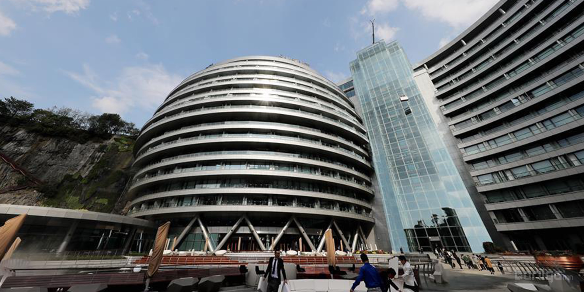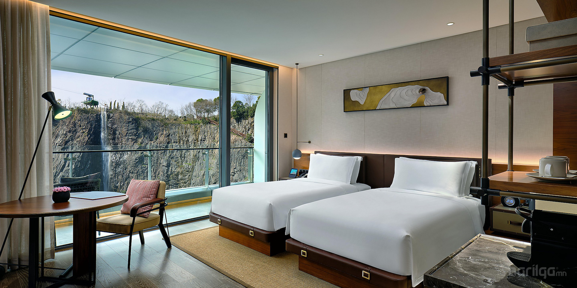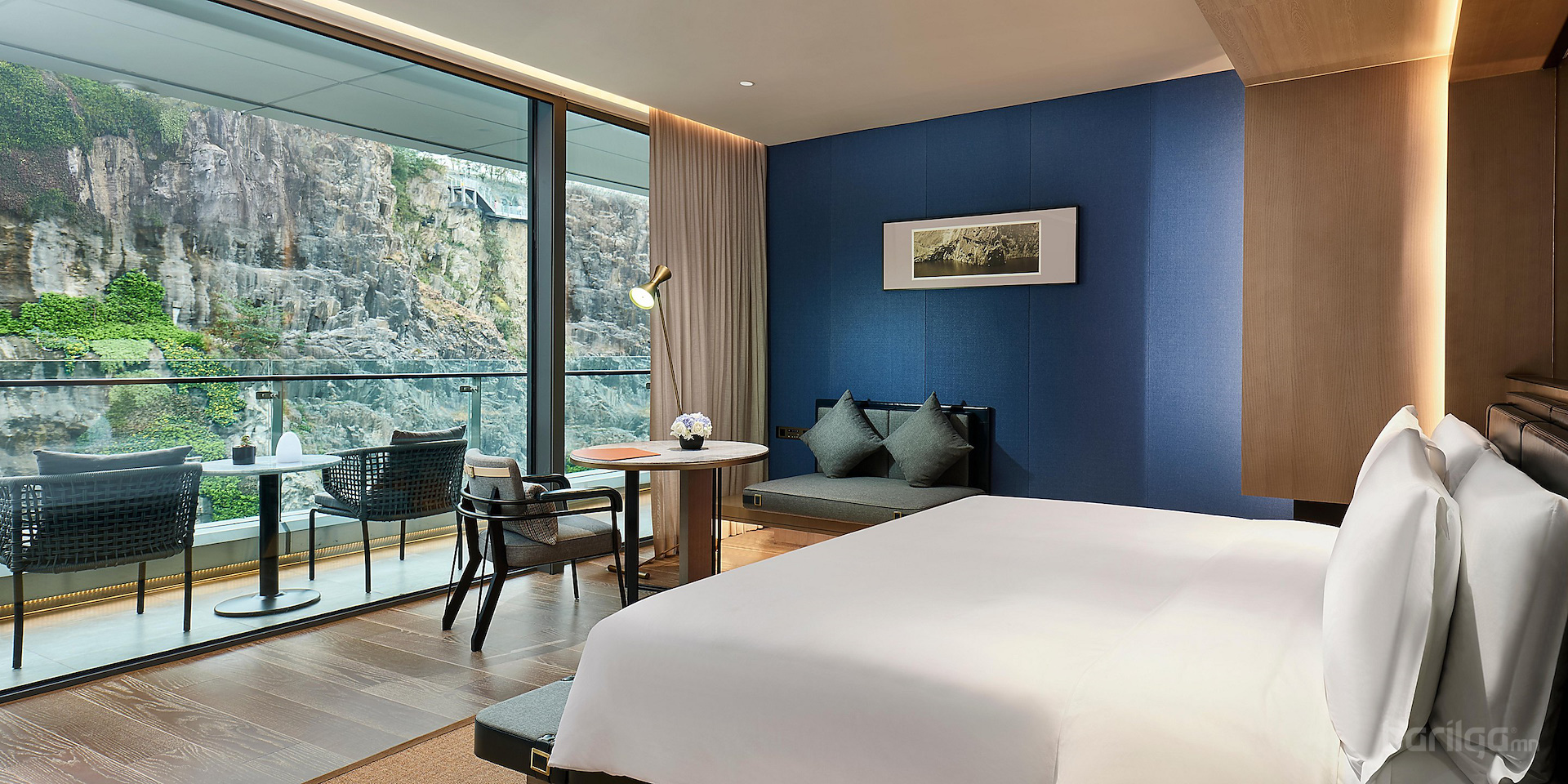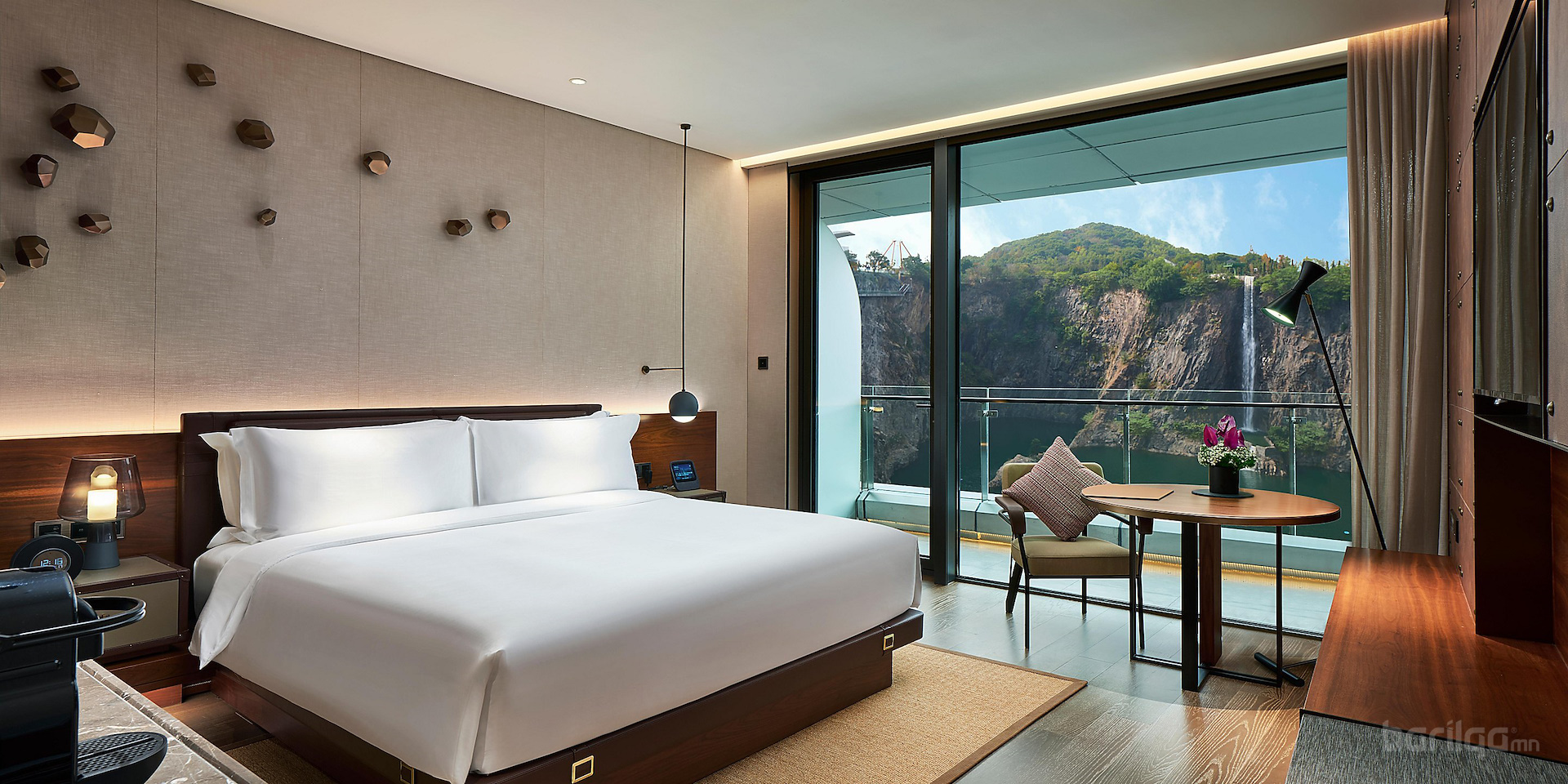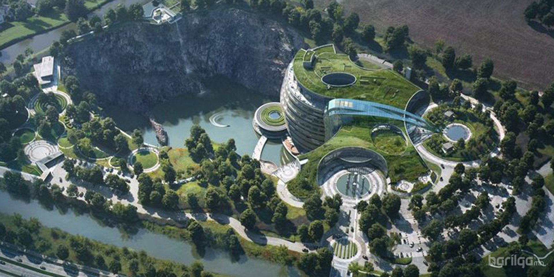 JADE+QA Architects-ийн бүтээсэн 18 давхар зочид буудал нь хуучин уурхайд сууж тогтсон, газрын гадаргаас доош, хадан цохиог налсан мэт зохиомжтой баригдсан. Өөрөөр хэлбэл орхигдсон уурхайн нэг ханыг ашиглаж барьсан энэхүү барилга нь уурхайн нөхөн сэргээлтийн нэг шинэлэг жишиг болно гэж архитектор Жохман хэлэв. Тэрээр "Энэ барилга аль хэдийнээ дурсгалт газар болсон, энэ бүтээн байгуулалтаараа хүрээлэн буй орчинтойгоо эв нэгдэлтэй амьдарч болдгийн тод жишээг харуулахыг хүссэн . Ил уурхай нь зочид буудлын нэг хэсэг, зочид буудал нь карьерын нэг хэсэг болно" гэжээ.