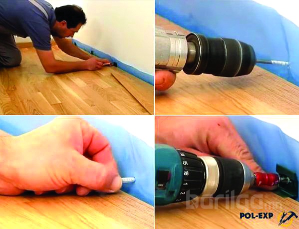 Паркетан шалаа шахаж дууссаны дараа цэвэрлэгээ хийж, шалны хөвөө /плинтус/-ыг өөрийнх нь холбох хэрэгслүүд болох тогтоогч, дотор гадна булан, төгсгөвч, залгаа хэрэглэн цэвэр үзэмжтэй хийж гүйцэтгэх хэрэгтэй. Хийхээс өмнө паркет хана хоёрын завсар дахь тоос шороог цэвэрлээд паркет түгжээндээ бүрэн гүйцэд орсныг шалгана. Плинтусын тогтоогчийг 40-50 см зайтай хийх бөгөөд түүний ховилын түвшинд тэлэгчтэй шрупээр хананд тогтооно. Хэрэв нуухтай плинтус байвал плинтусыг төслийн байранд байрлуулан аль болох хананаас хөндийрөөгүй цэгүүдэд тэлэгчтэй шрупээр тогтоож, дараагийн плинтусыг залган шрупдэнэ. Булан тохой, залгаанд ойрхон тогтоогч хийвэл хана плинтус хоёрын хоорондох зай завсар багасах талтай. Мөн эхлэл болон төгсгөл хэсэгт 50 мм-ийн зайд түгжээг байрлуулна.