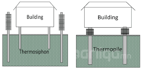 •Цэвдэгтэй газар баригдсан барилга байгууламжийг нэгдүгээр зарчмаар барихтай хослуулан термосифон хоолойг ашигласнаар цэвдгийн гэсэлт, суулт, деформаци үүсхээс урьдчилан сэргийлж чадна.